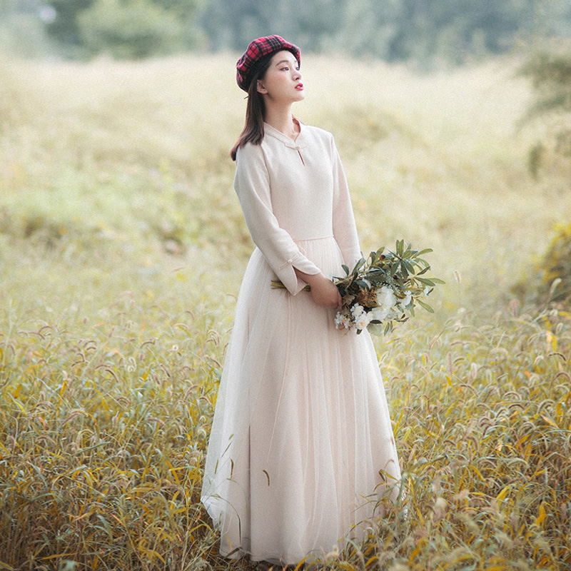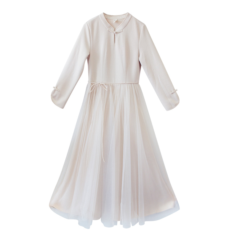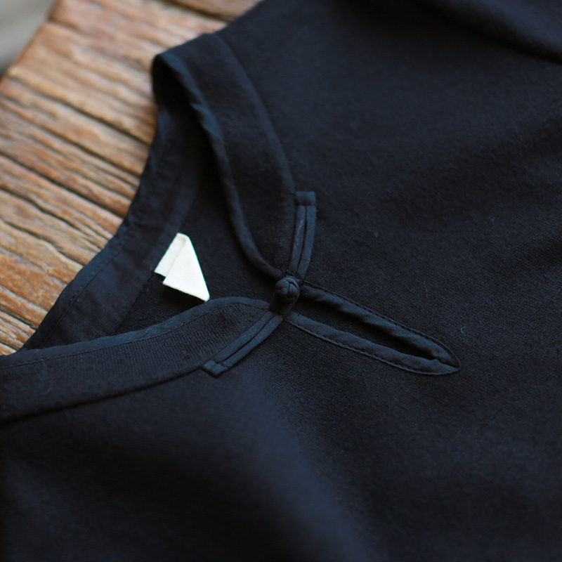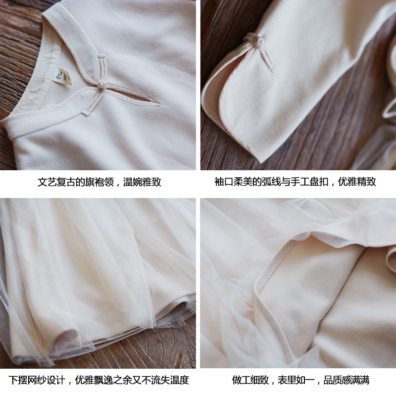 【7折出清】棉麻记国风针织连衣裙女新款复古小黑裙网纱长裙裙子