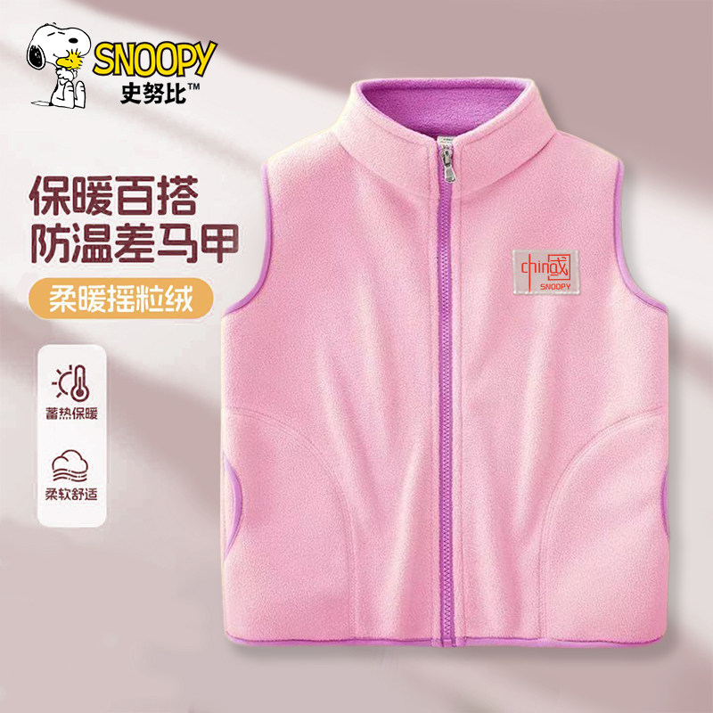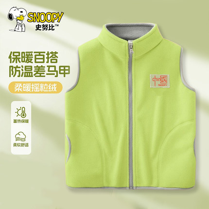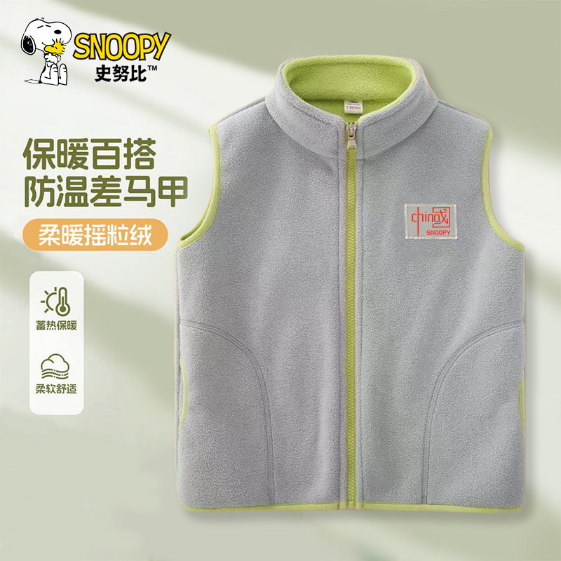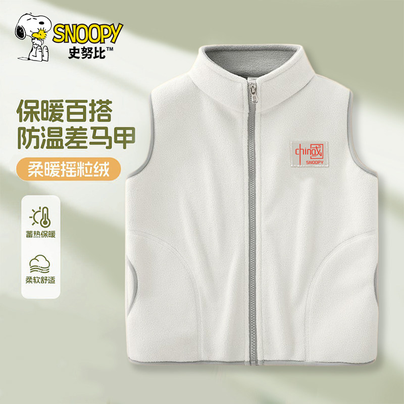 史努比儿童春秋新款舒适防风小立领双面绒马甲2026休闲保暖上衣潮
