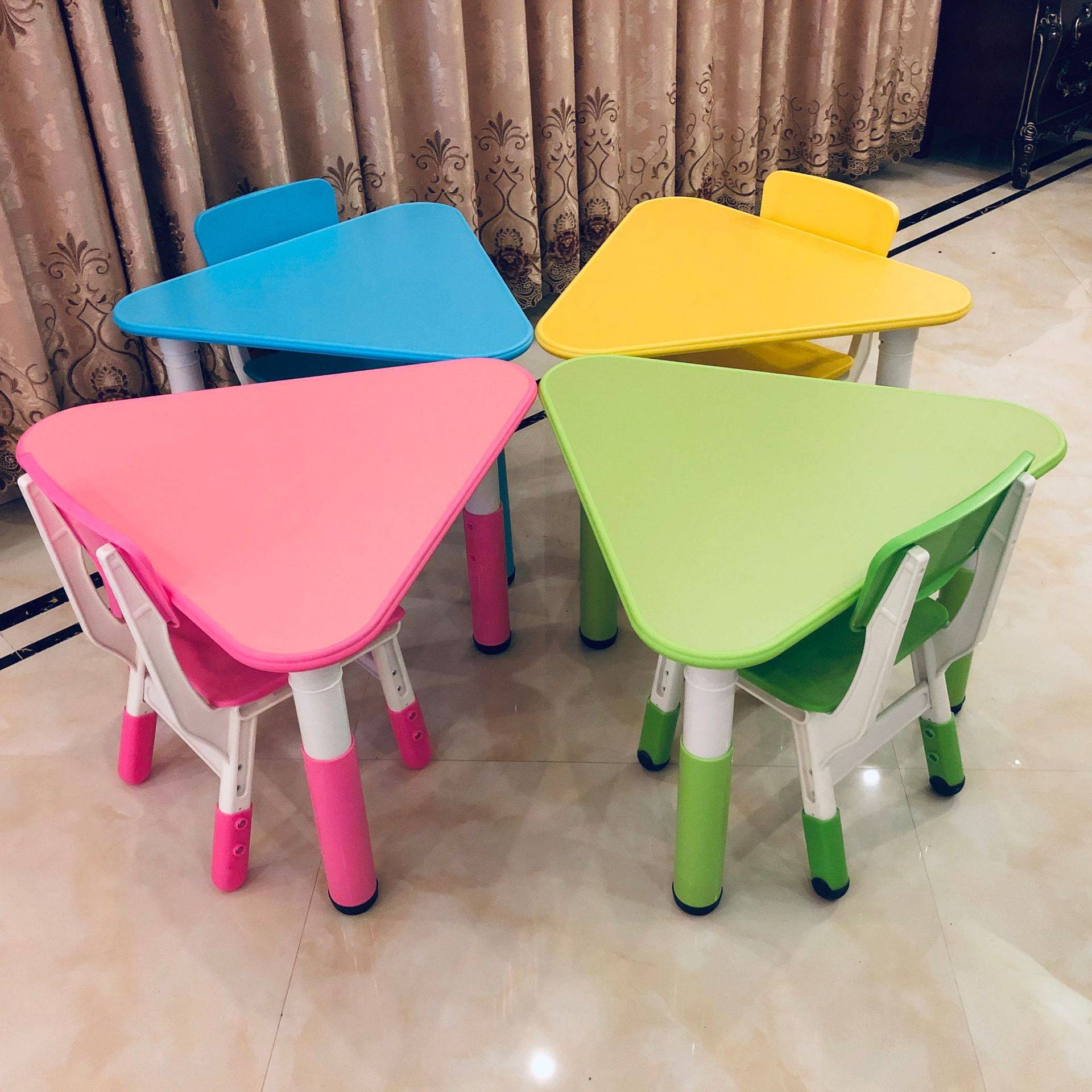幼儿园三角组合桌儿童造型桌椅学生学习可拼式箭头桌防火板升降桌