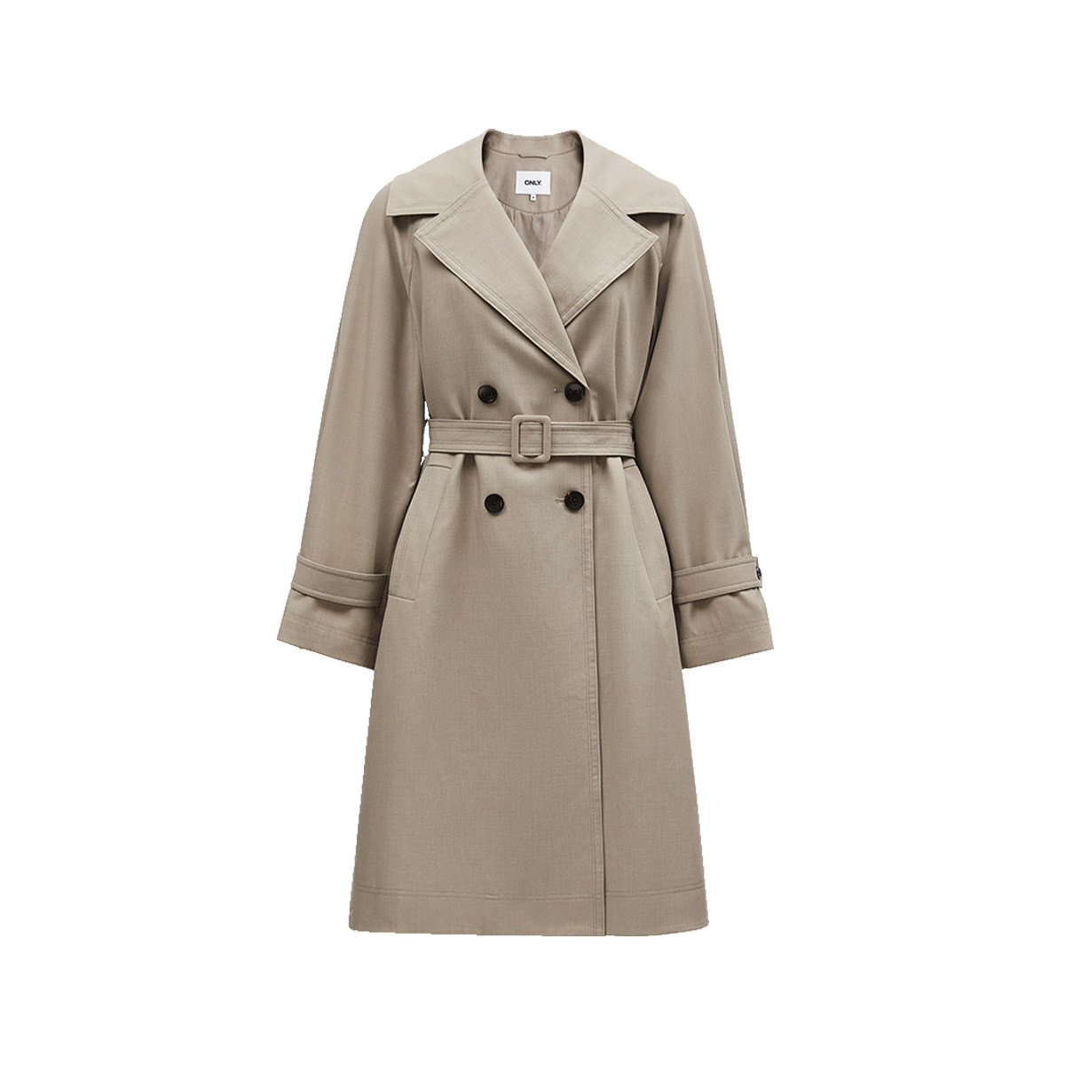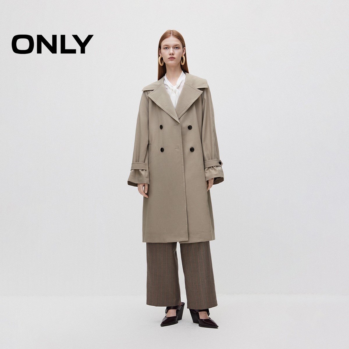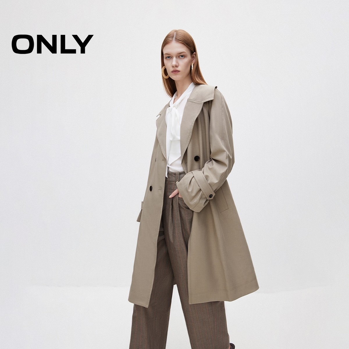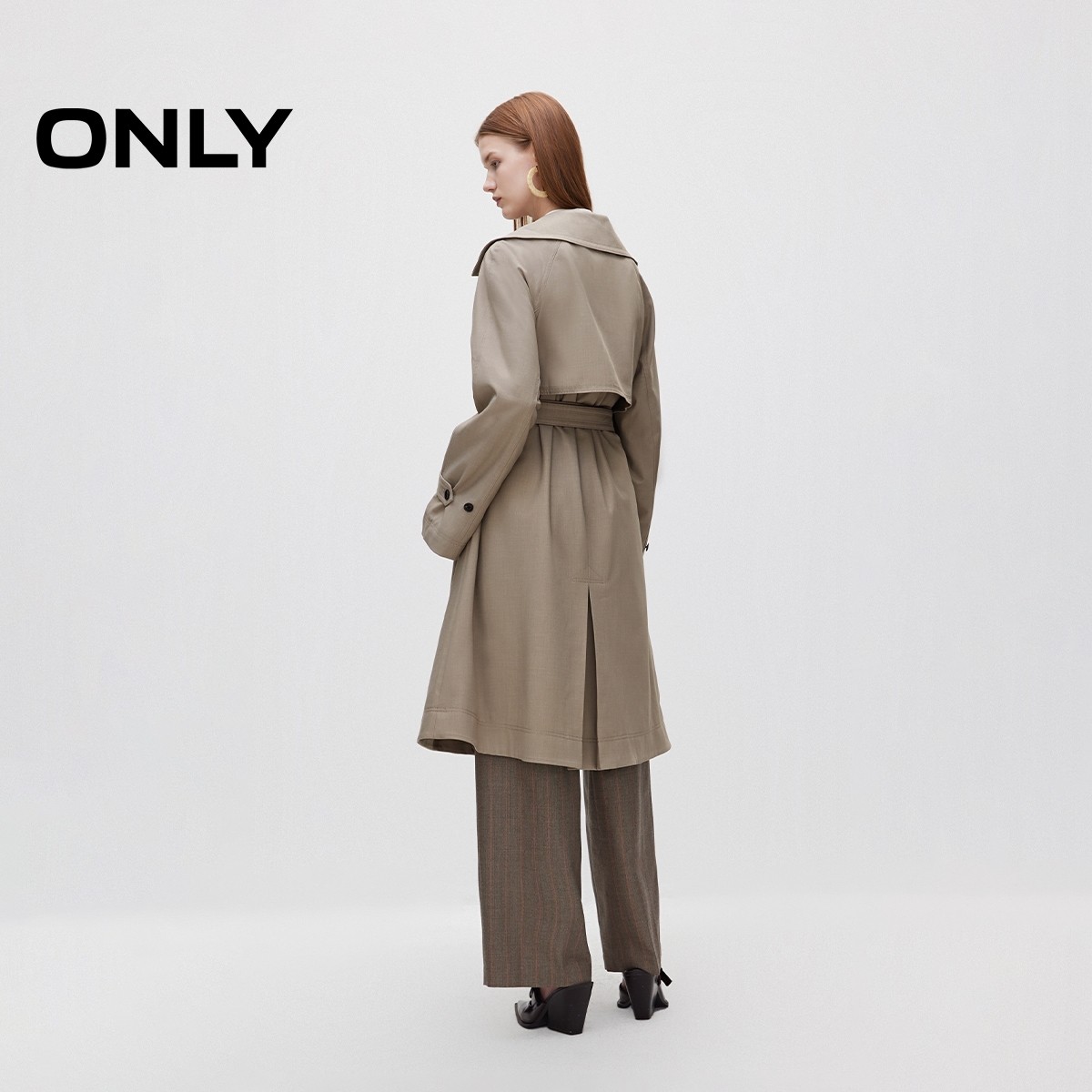 绫致ONLY秋冬新简约休闲翻领直筒中长款风衣外套女时尚