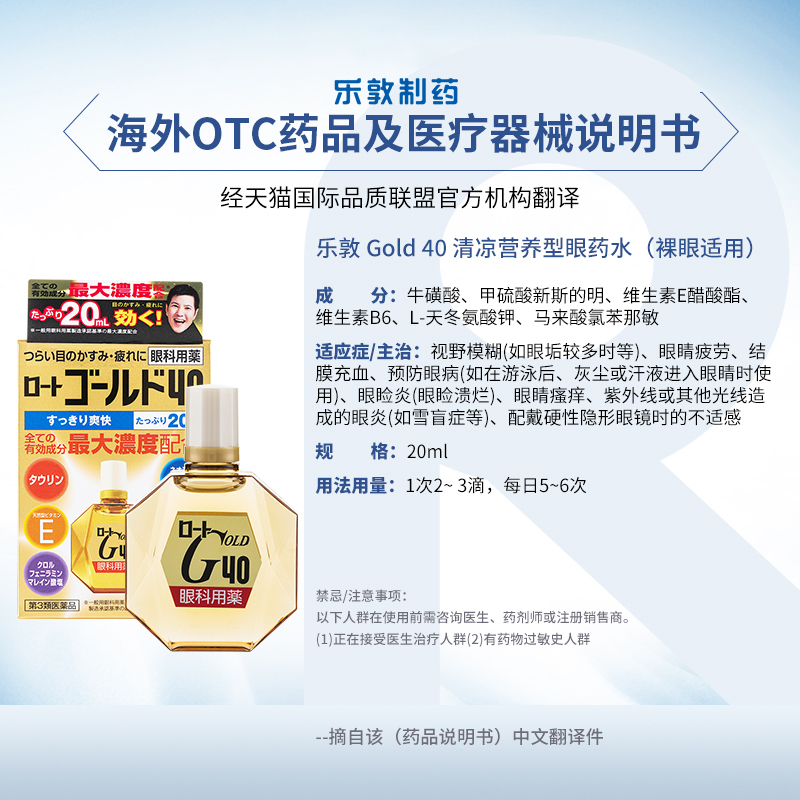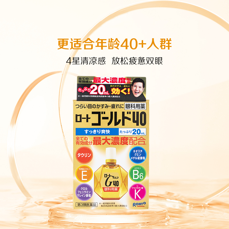 【自营】日本乐敦Gold40缓解眼干疲劳滋润眼药水滴眼液20ml清凉款