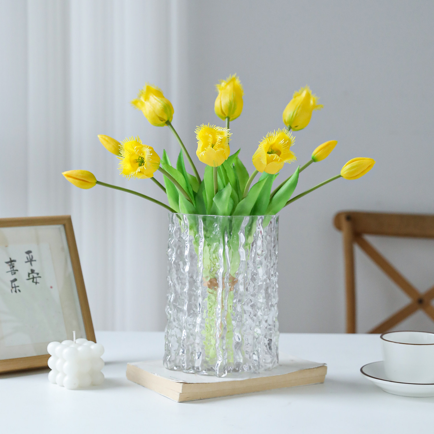 高档胶感仿真郁金香花束摆件