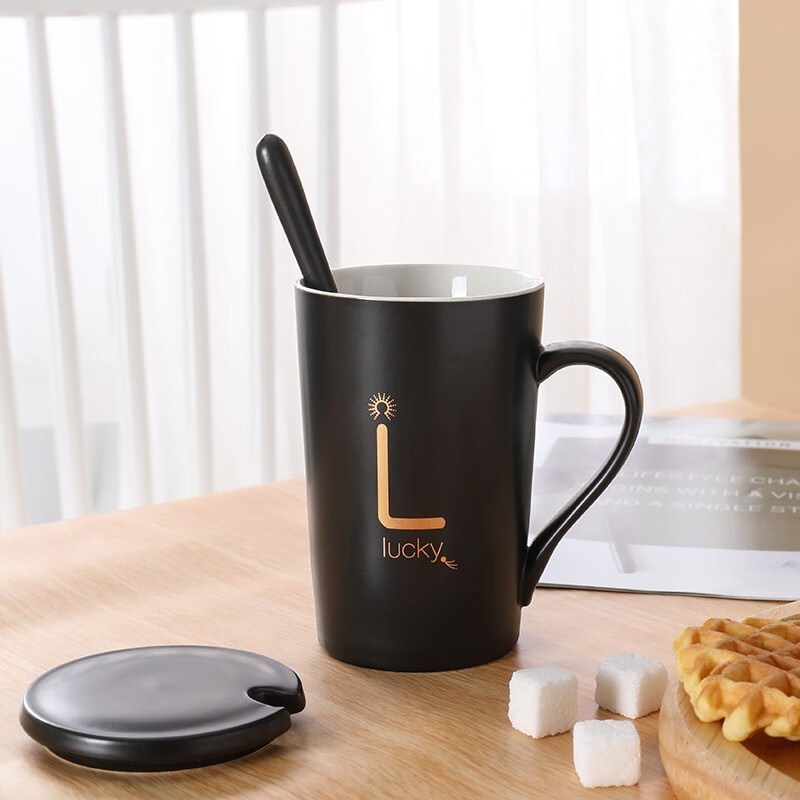 贝瑟斯马克杯咖啡杯子套装勺盖简约带陶瓷茶杯大容量女办公室风