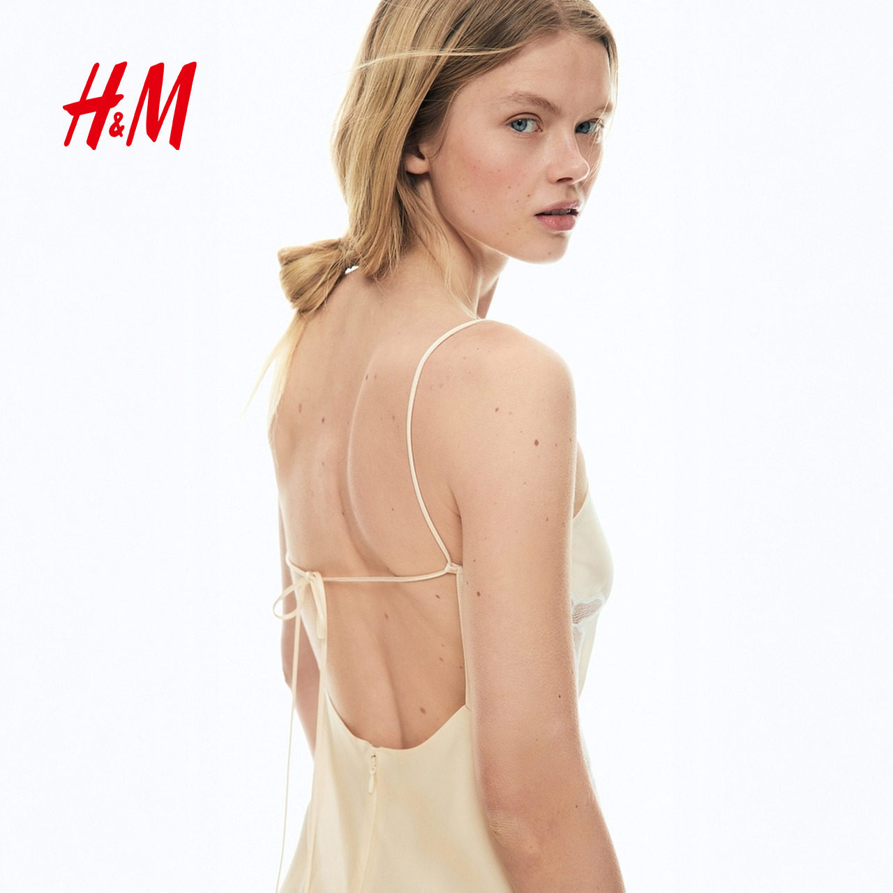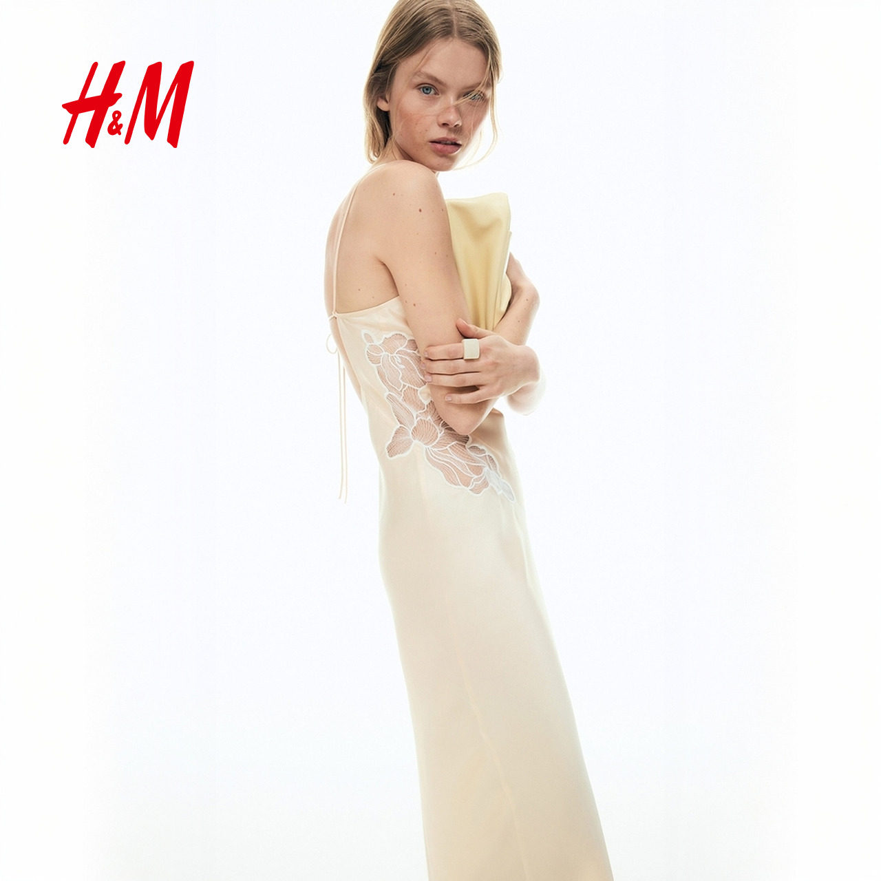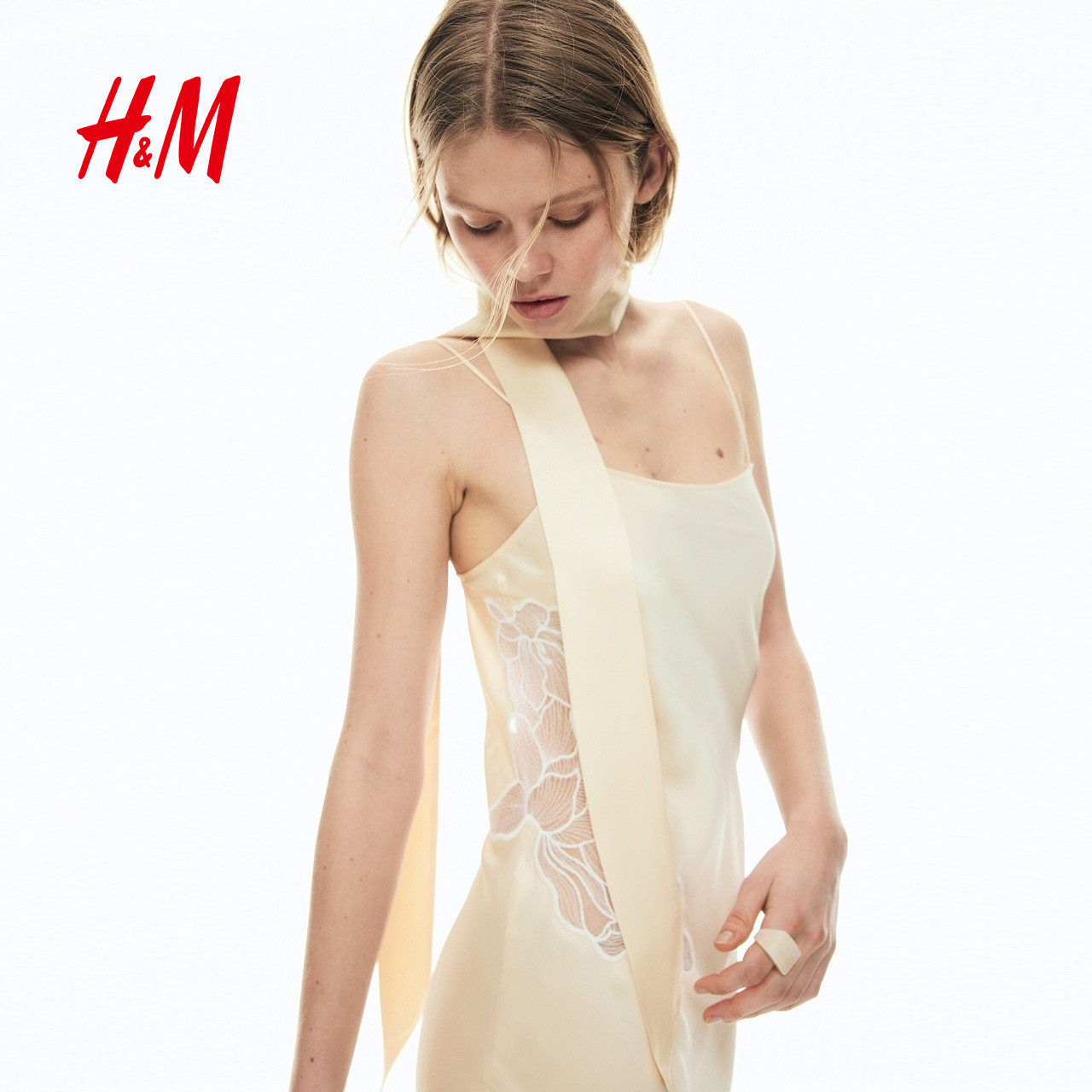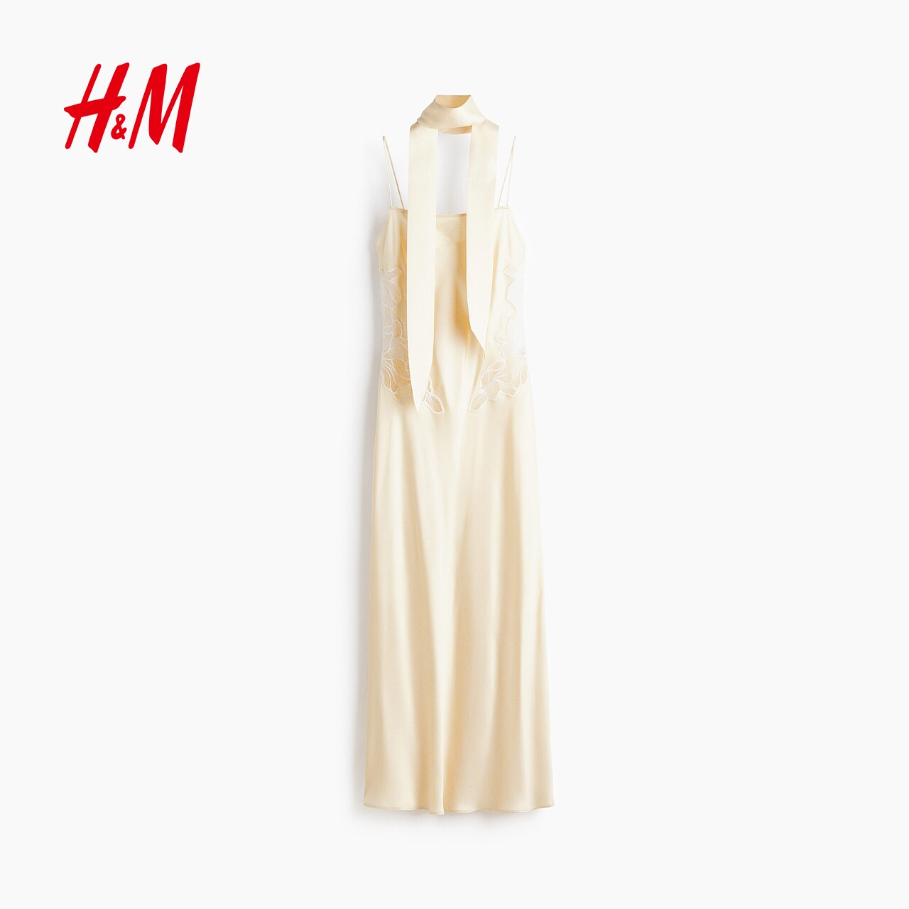 HM2026春季新款女装蕾丝装饰缎质围巾连衣裙1332209