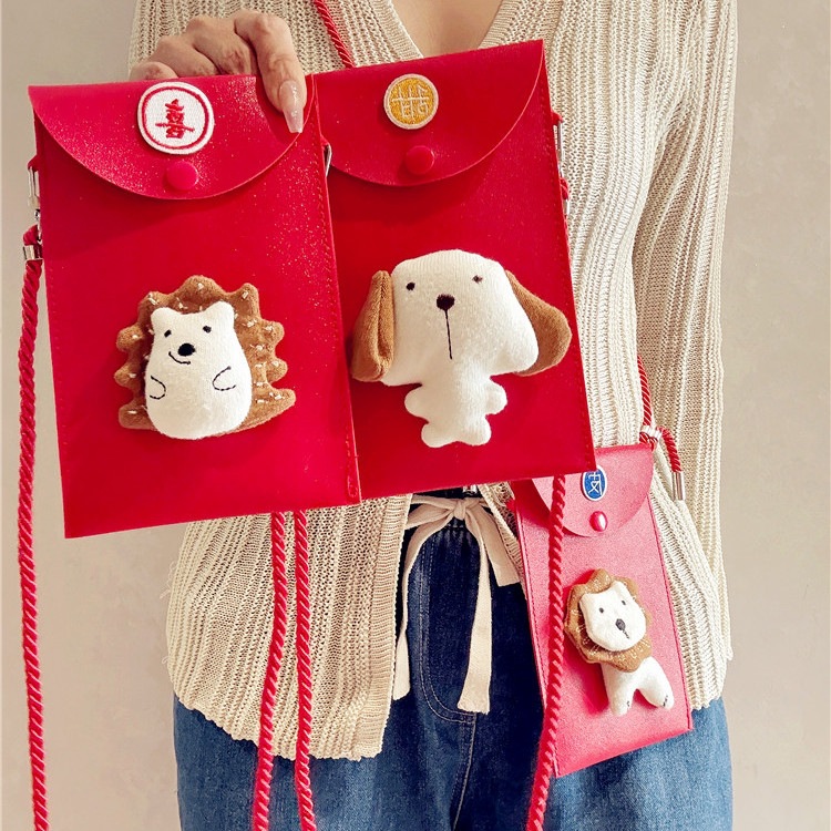 可爱布艺毛绒手工皮质万元红包带挂绳喜袋春节过年拜年喜庆利是封