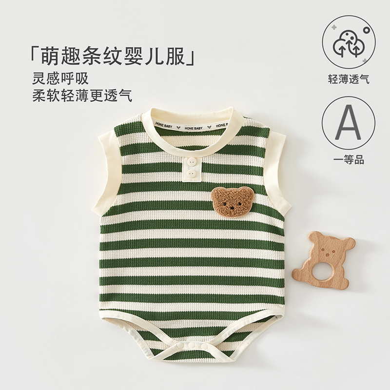 婴儿包屁衣夏季短袖连体衣超薄透气条纹款婴儿衣服三角哈衣爬爬服