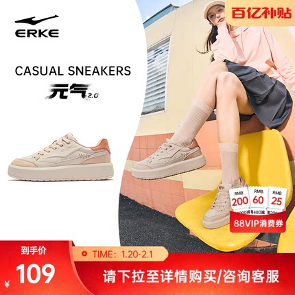 鸿星尔克女鞋板鞋厚底增高小白鞋冬季新款皮面休闲鞋百搭运动鞋子