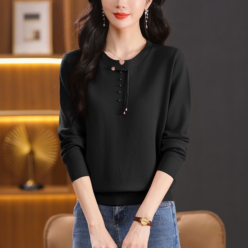 新中式中年妈妈秋装新款桑蚕丝上衣大码女装春秋季羊毛打底衫洋气