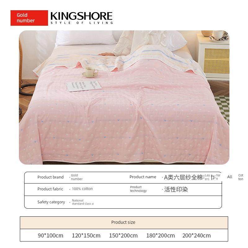 金号A类全棉六层纱布毯子纯棉儿童毛巾被办公室午睡休闲盖毯盖毯