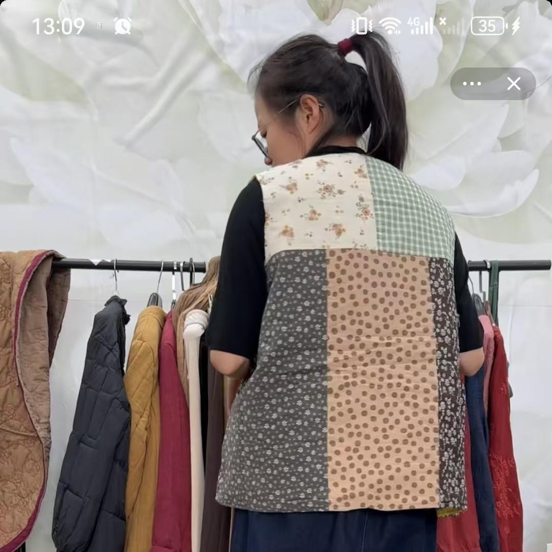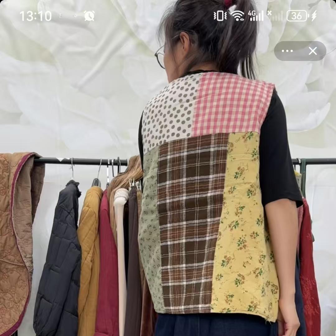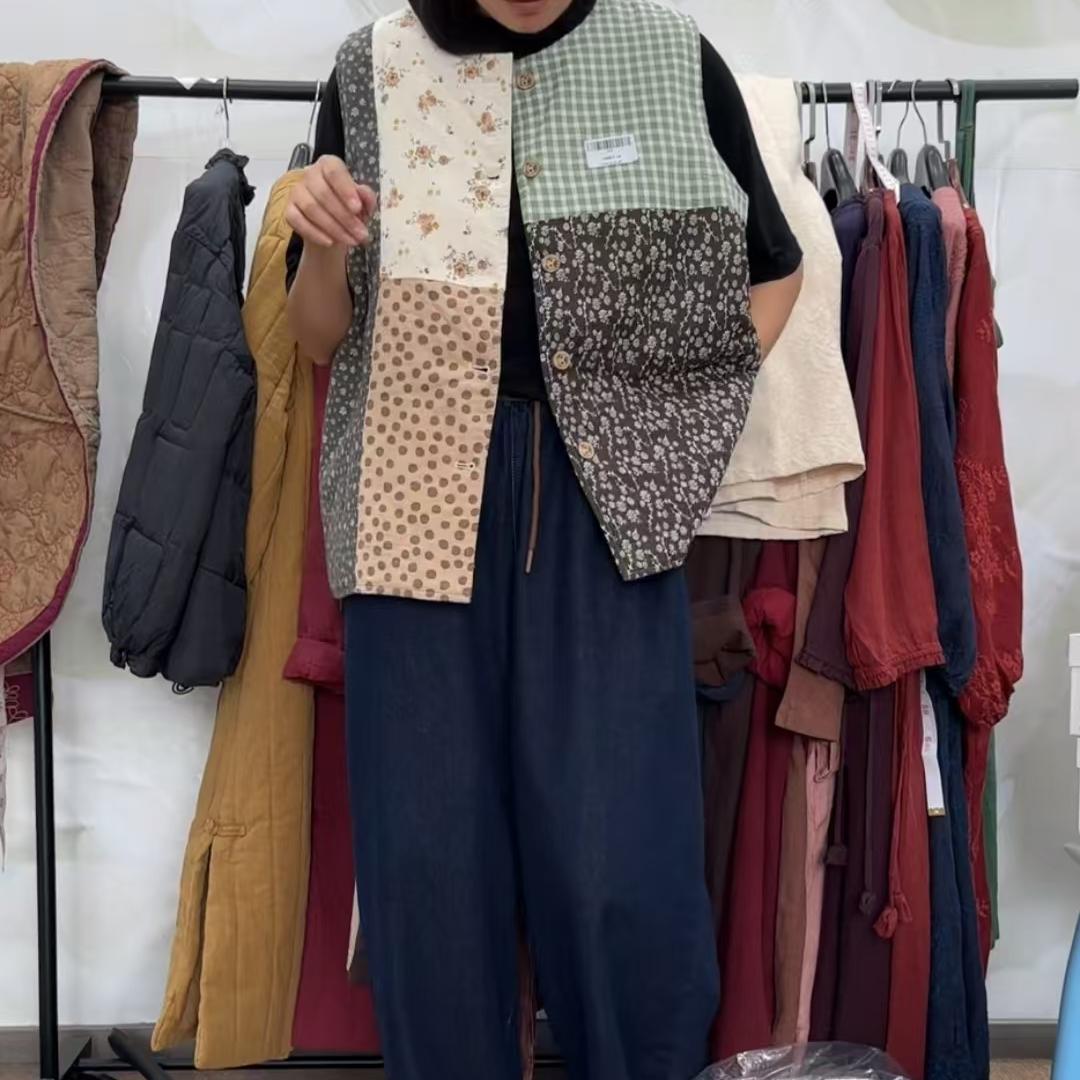 20147秋冬女装新款百搭拼布圆领夹棉轻薄森系背心马甲外套女马夹