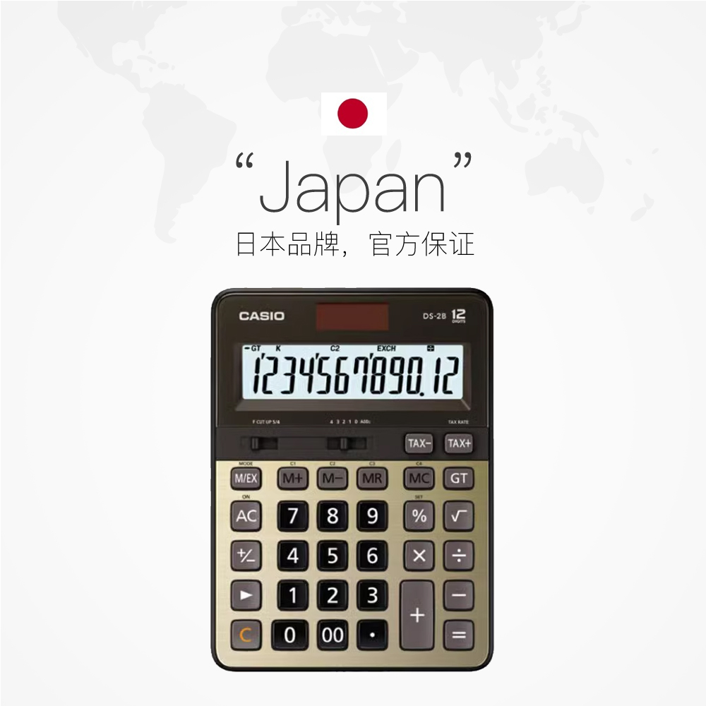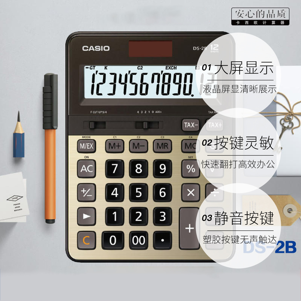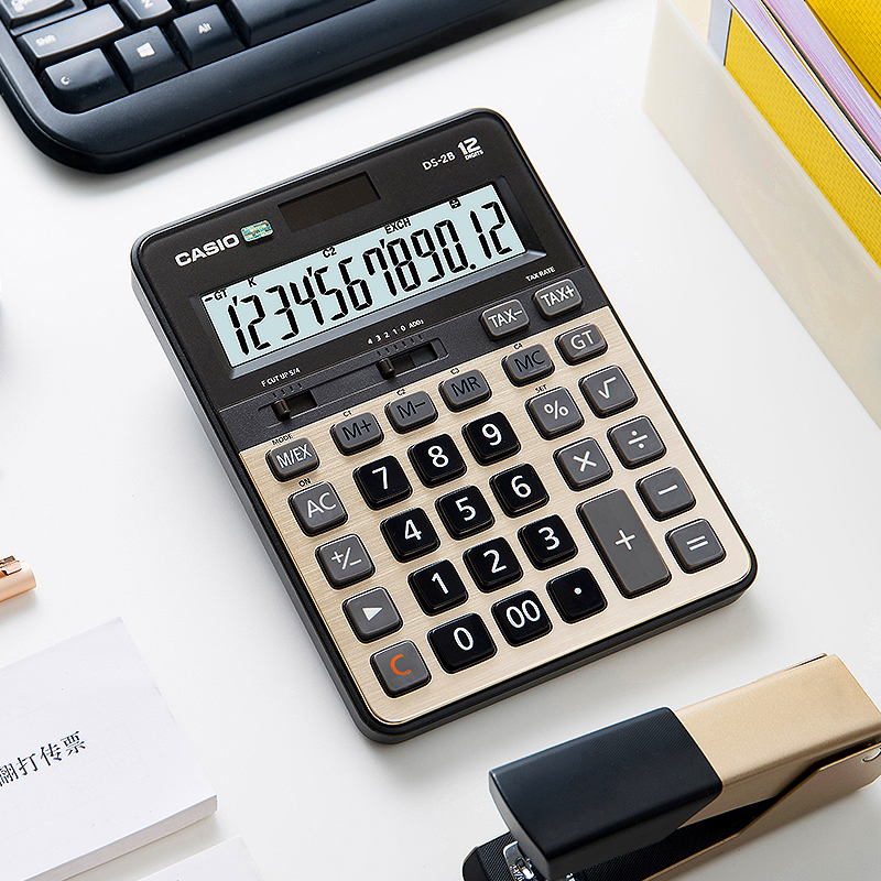 【自营】CASIO/卡西欧DS-2B台式计算器银行会计财务办公商务送礼静音快速翻打金属面板大屏太阳能计算机