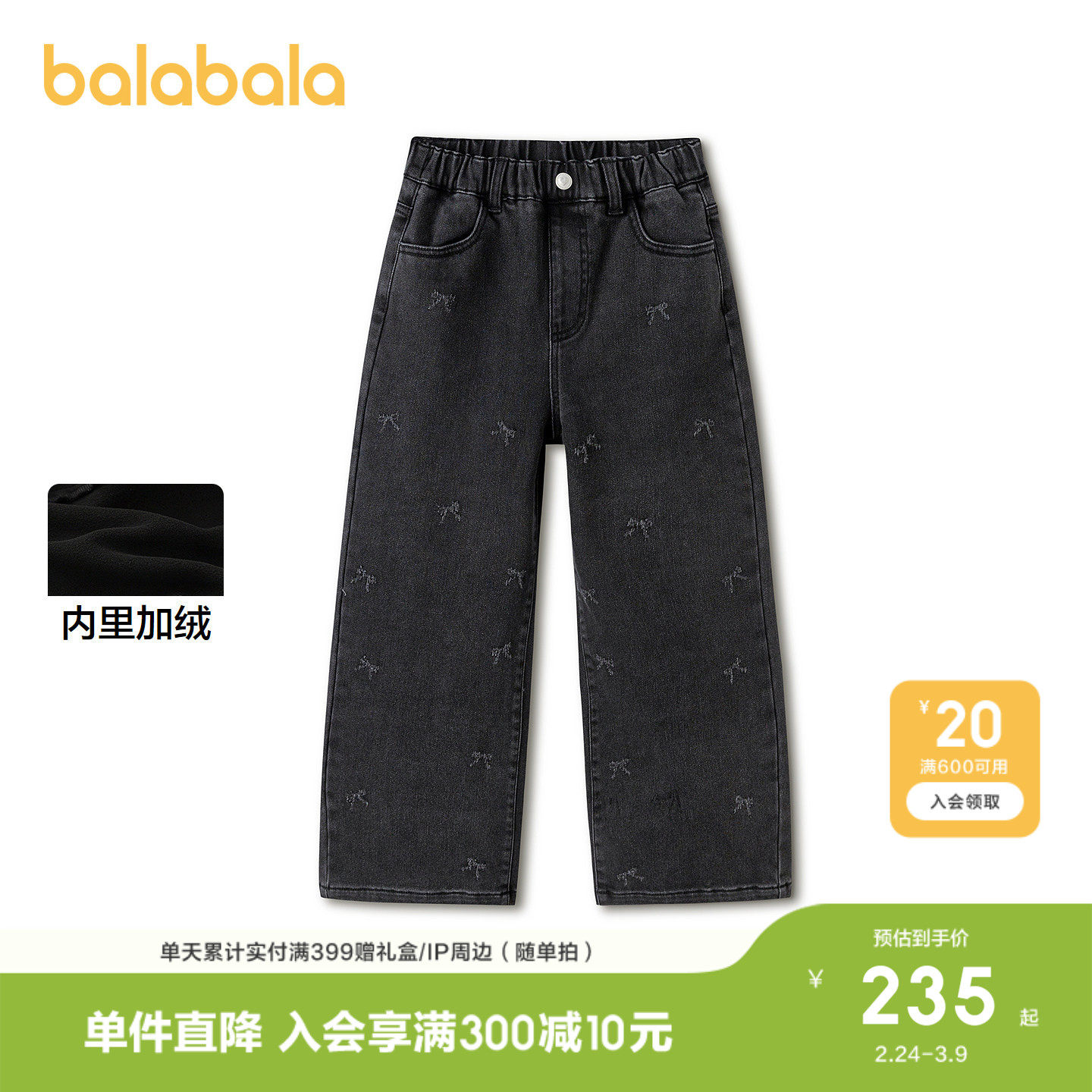 巴拉巴拉长裤女童直筒牛仔裤甜美
