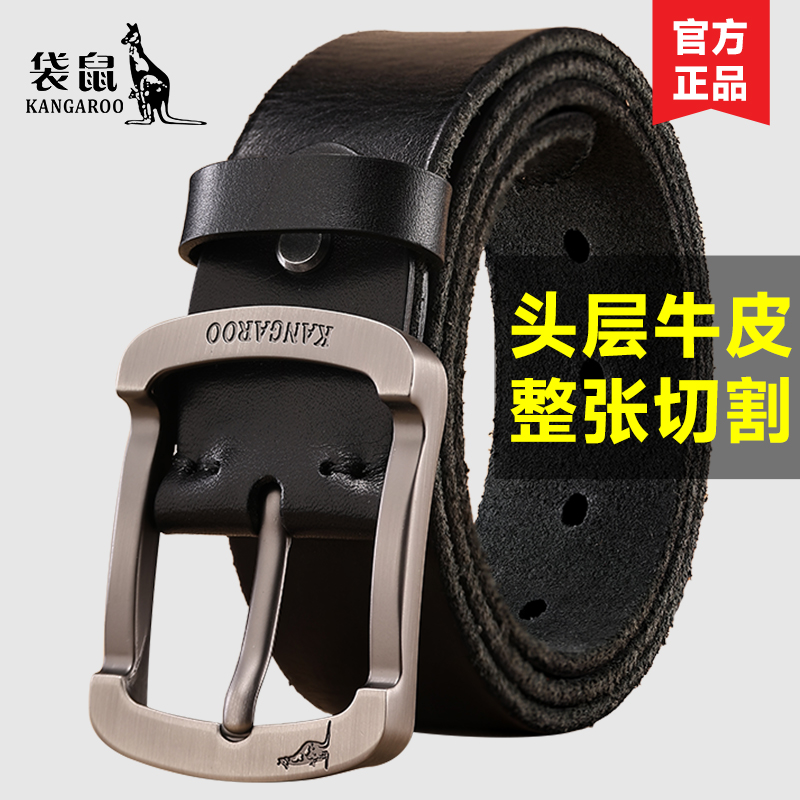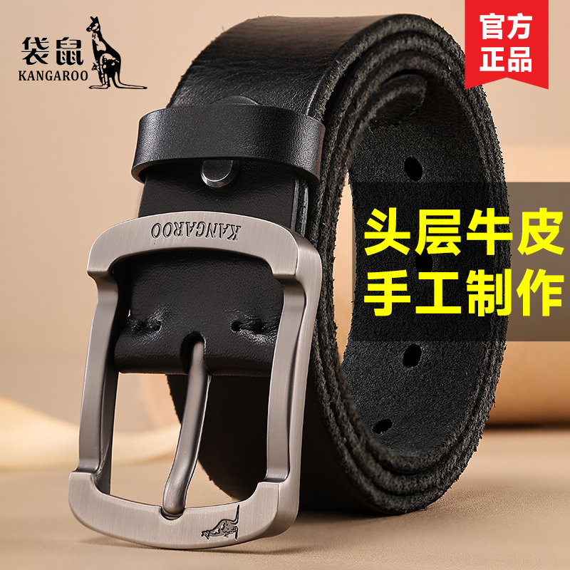 原创黑色加厚头层牛皮皮带男真皮复古百搭针扣腰带硬汉牛仔裤腰带