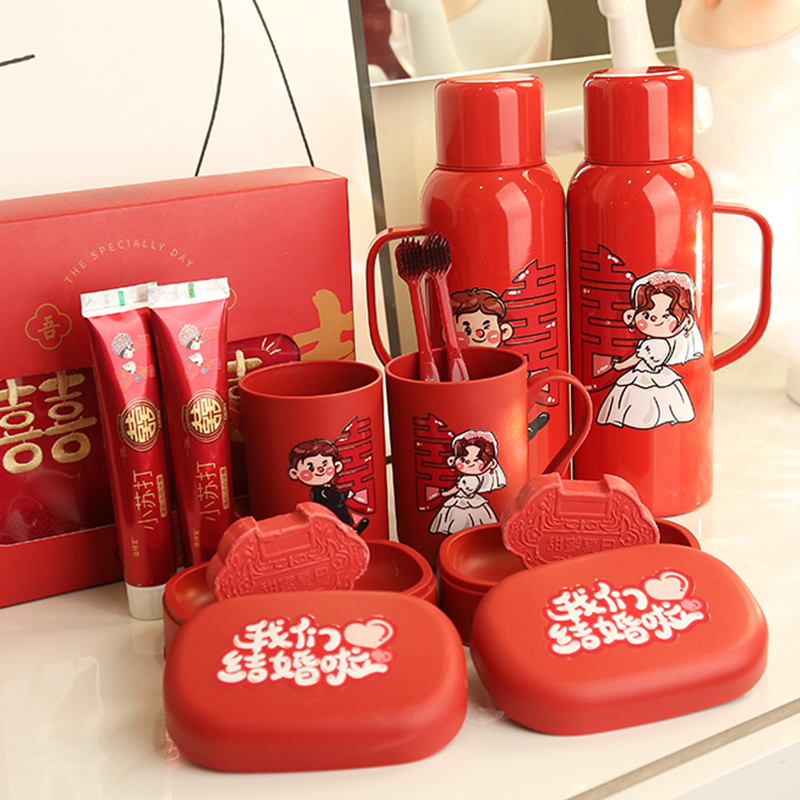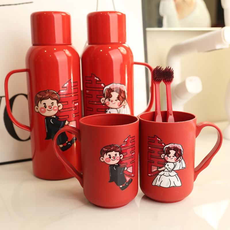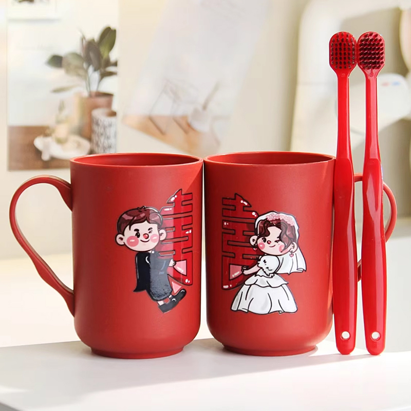 结婚漱口杯一对红色喜庆用品创意新婚陪嫁洗漱杯套装牙刷杯子礼物