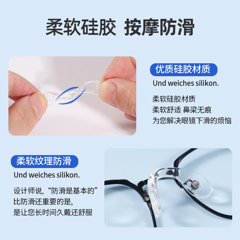一体式U型眼镜鼻托硅胶连体配件防滑防压痕鼻垫防脱落眼睛鼻子垫