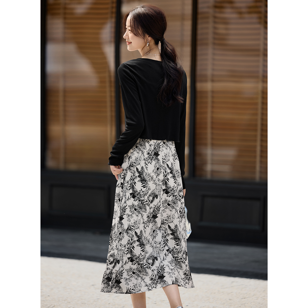 沫晗依美浪漫出游茶歇印花吊带连衣裙针织开衫两件套25春新款套装