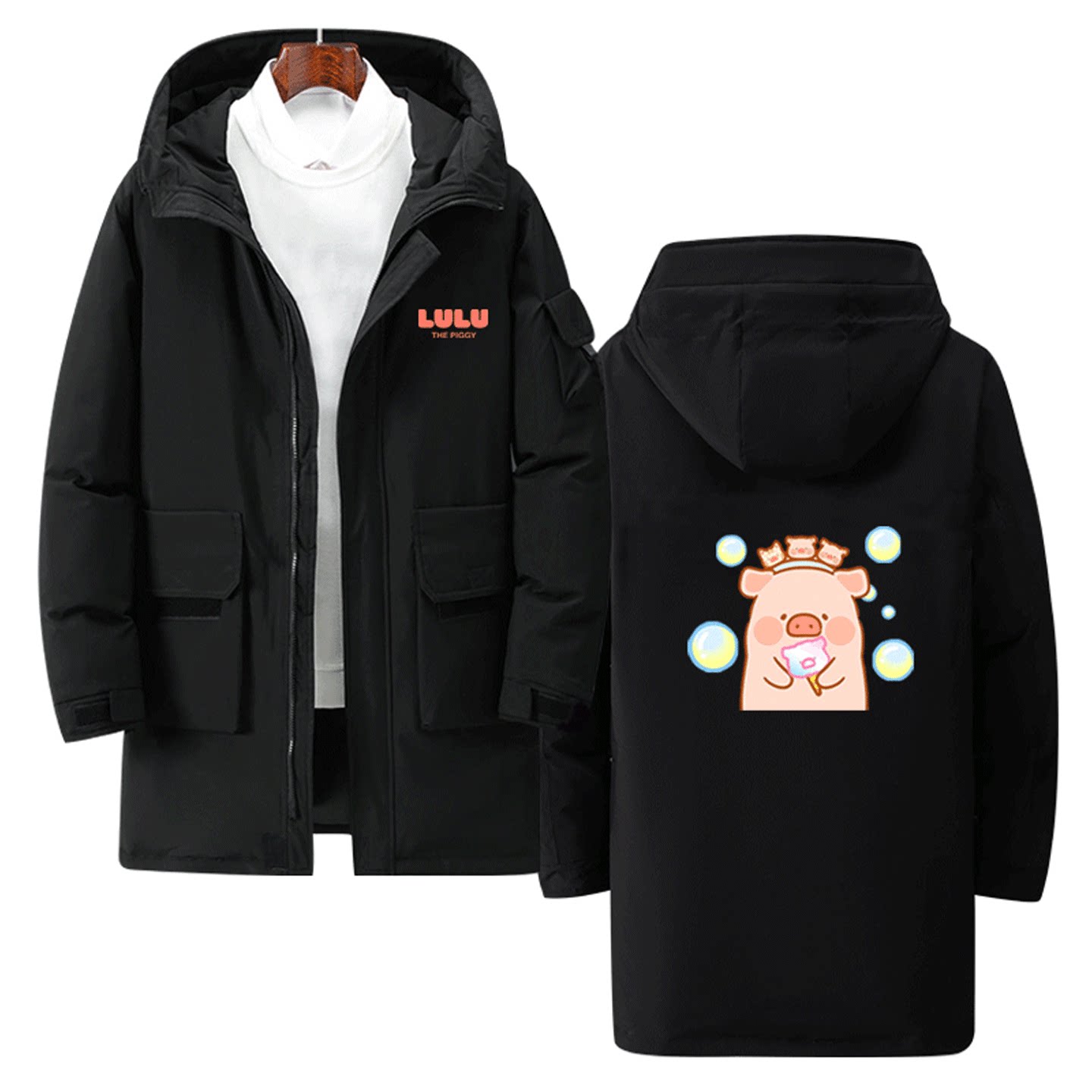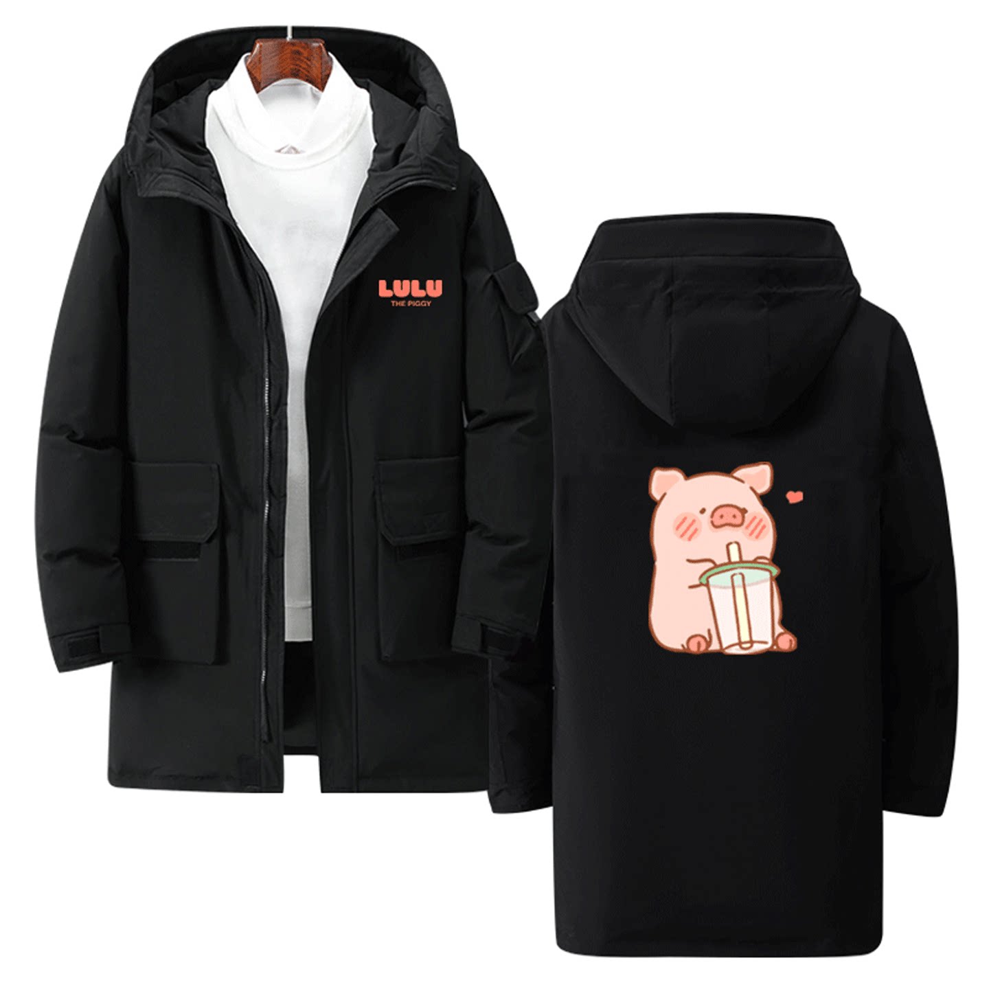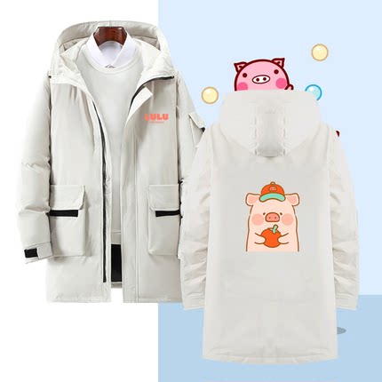 LULU猪卡通粉红小猪印花周边男女情侣秋冬休闲可定制中长款羽绒服