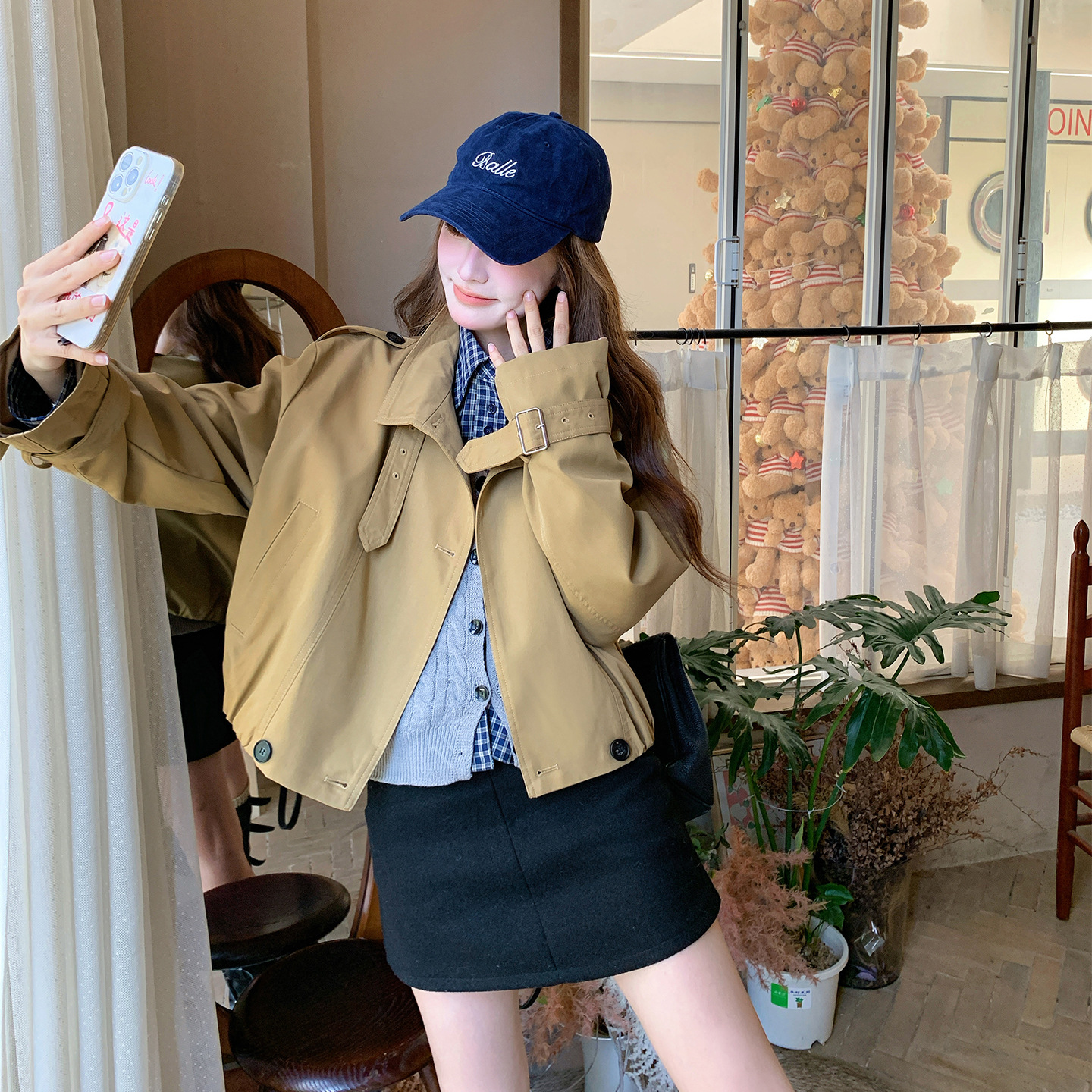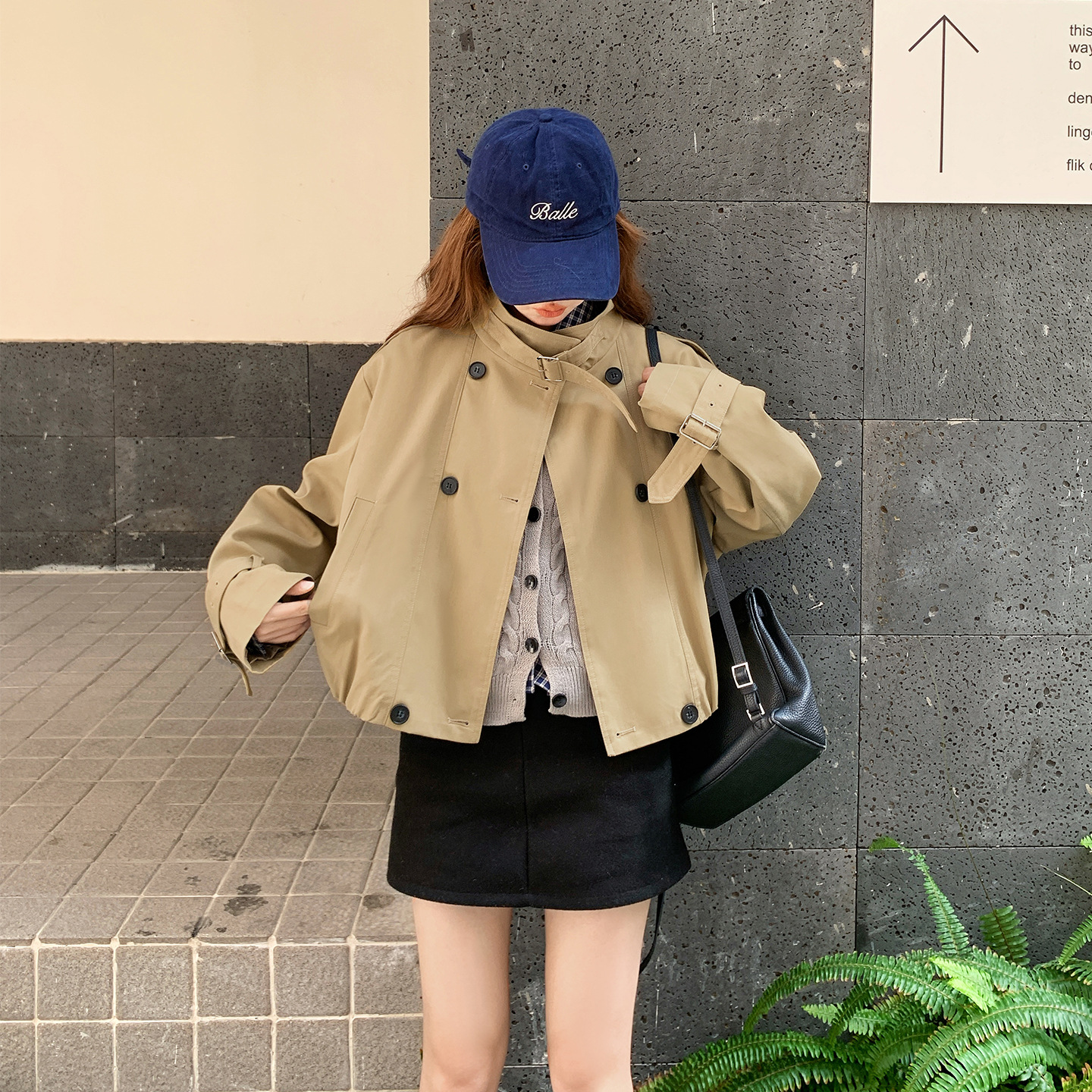 卡其色短款风衣外套女小个子春秋2025新款韩系高级感休闲立领夹克