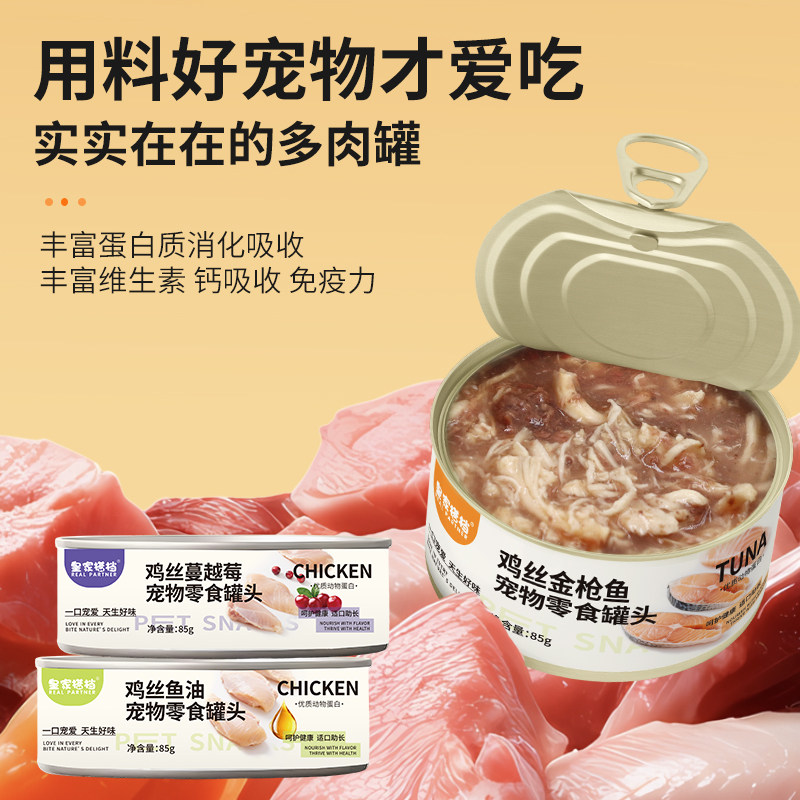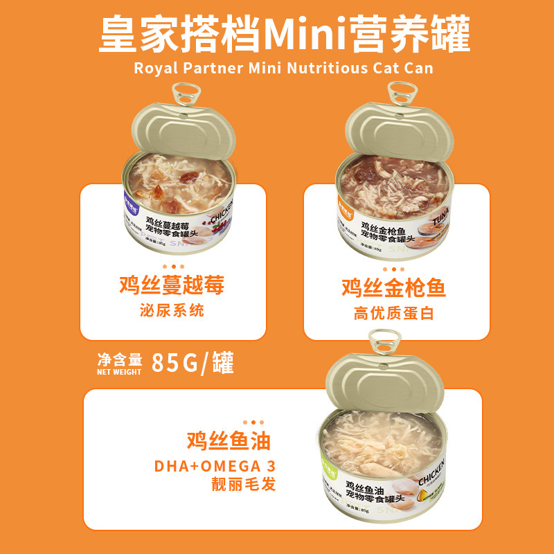 皇家搭档猫罐头猫零食鸡肉丝鱼油蔓越莓金枪鱼丝主食罐头补充营养