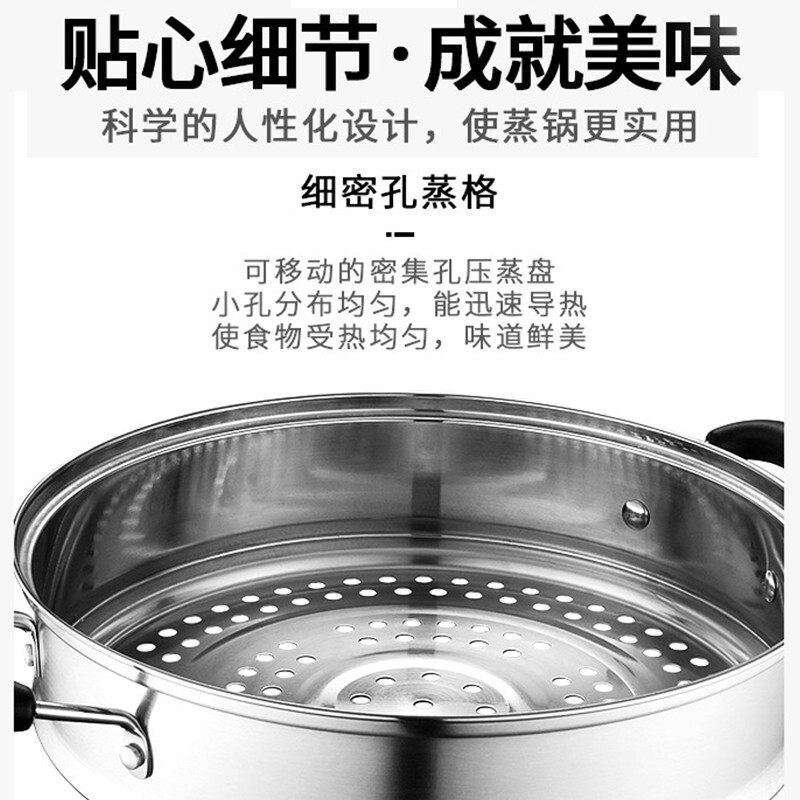 爱仕达蒸锅不锈钢家用26/28/32CM双层蒸笼大加厚三层复底蒸鱼馒头