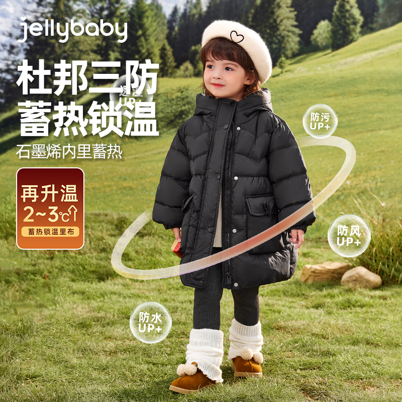 [抗菌绒]女童羽绒服冬季儿童三防加厚保暖红色外套潮宝宝冬装女孩