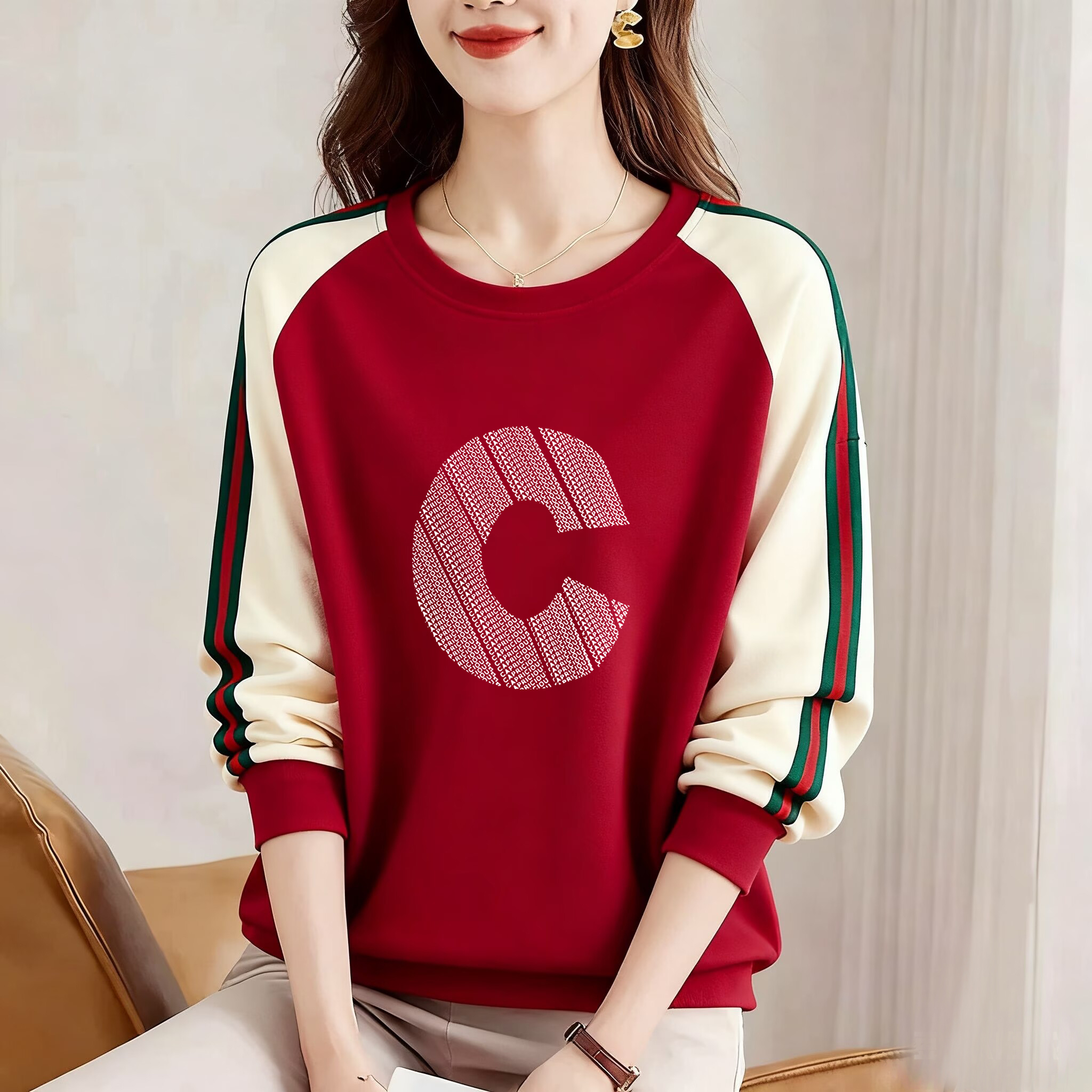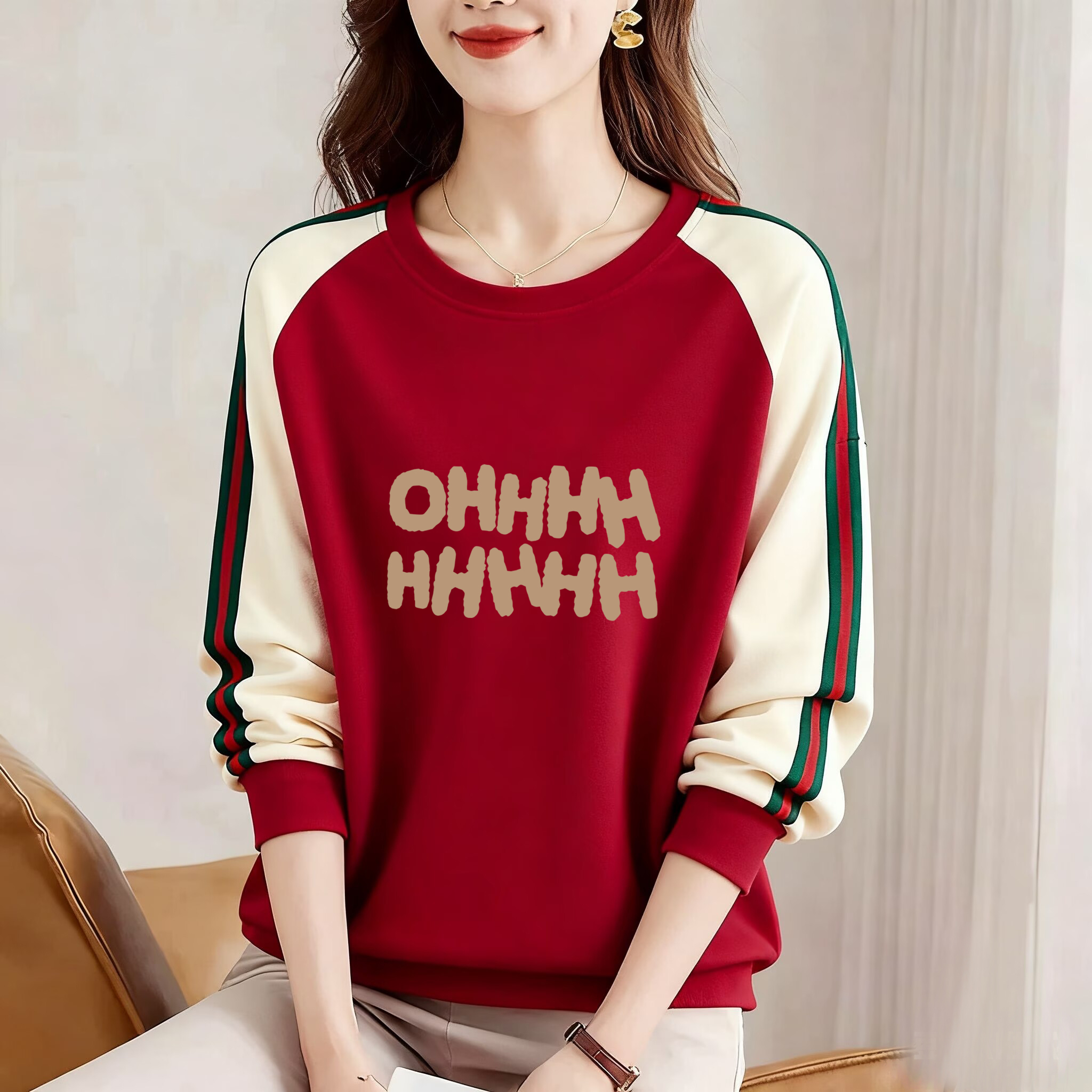 外贸出口洋气纯棉长袖印花卫衣女秋冬新款韩版撞色百搭显瘦上衣潮