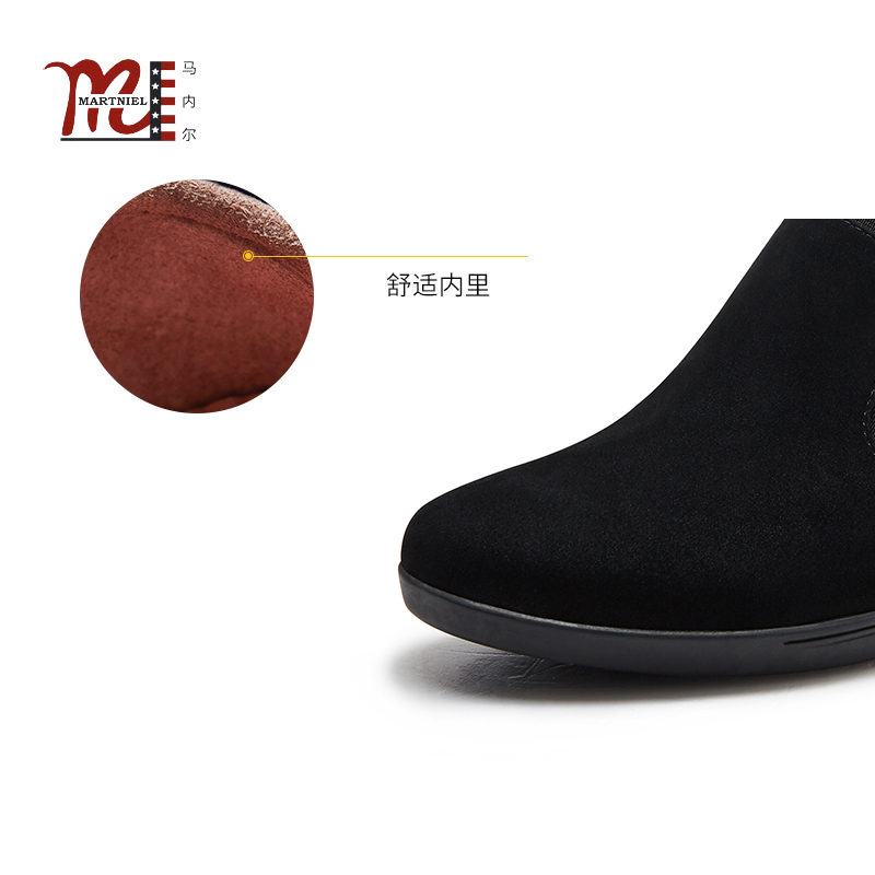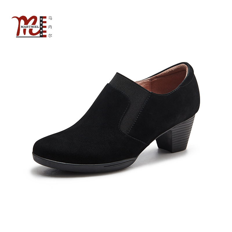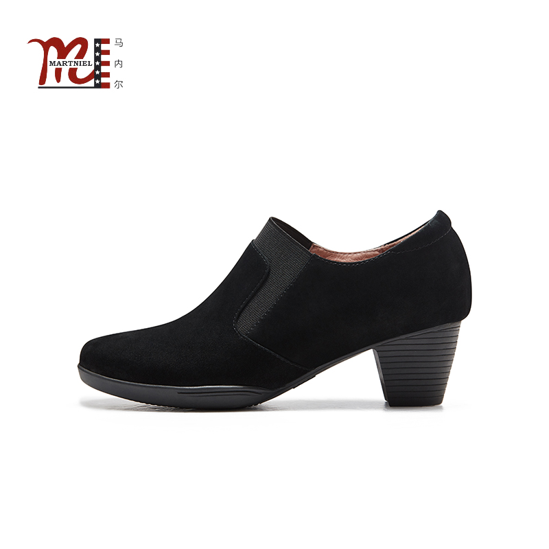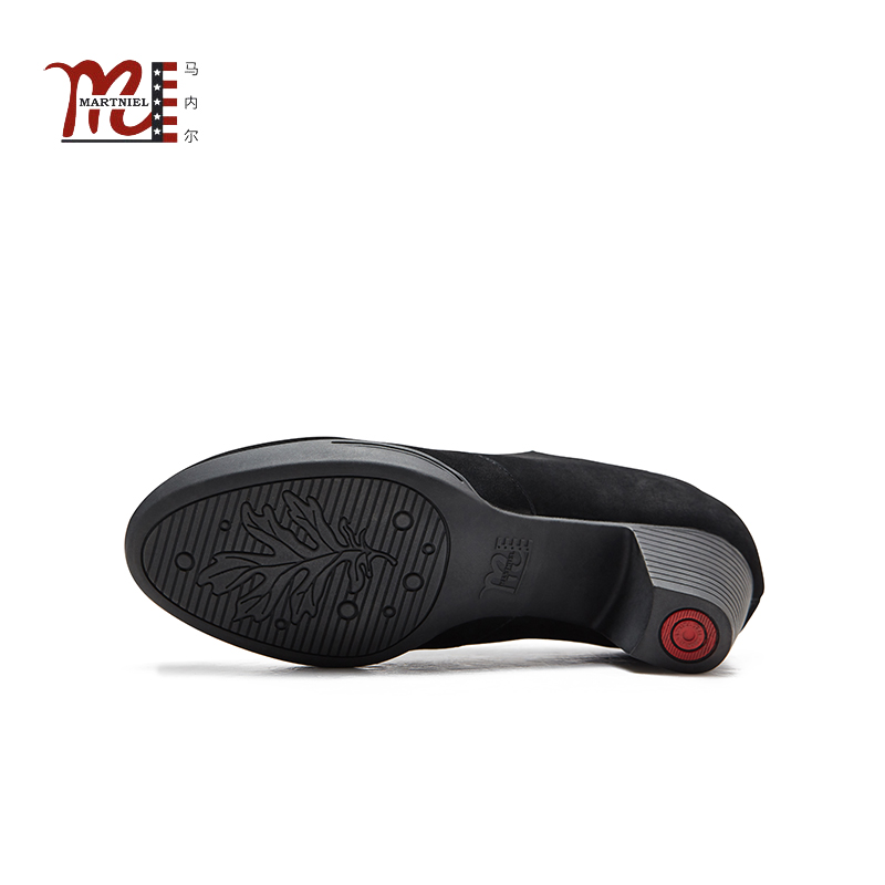 马内尔靴子女春秋黑色高跟鞋早秋复古短靴及踝单靴真皮粗跟裸靴