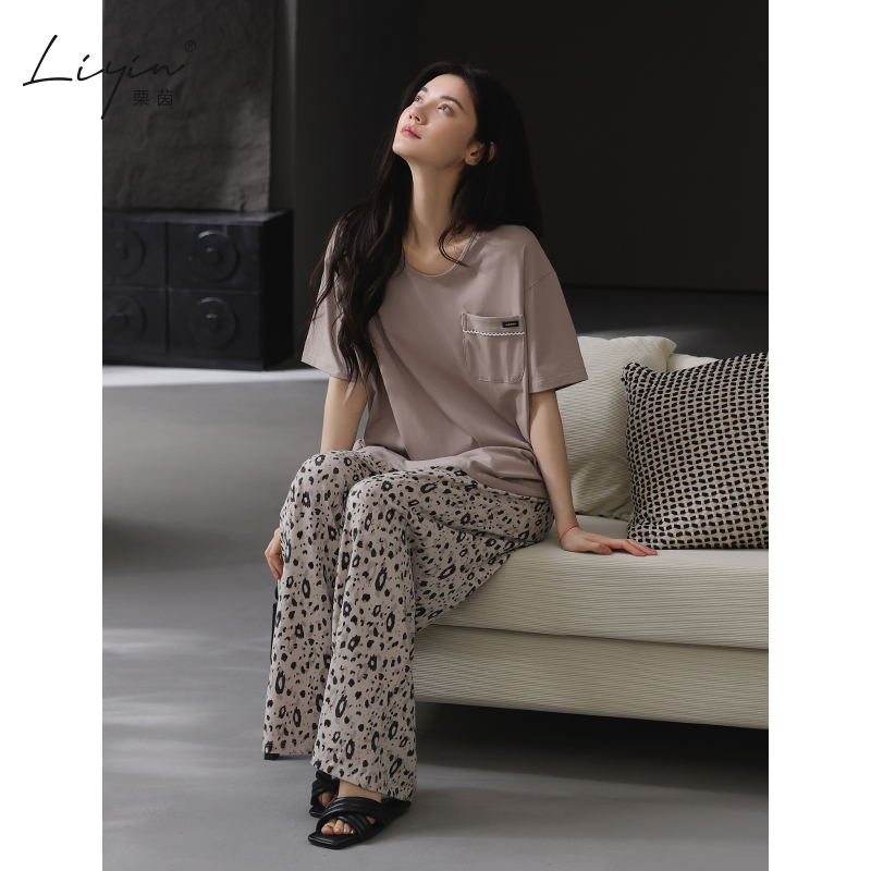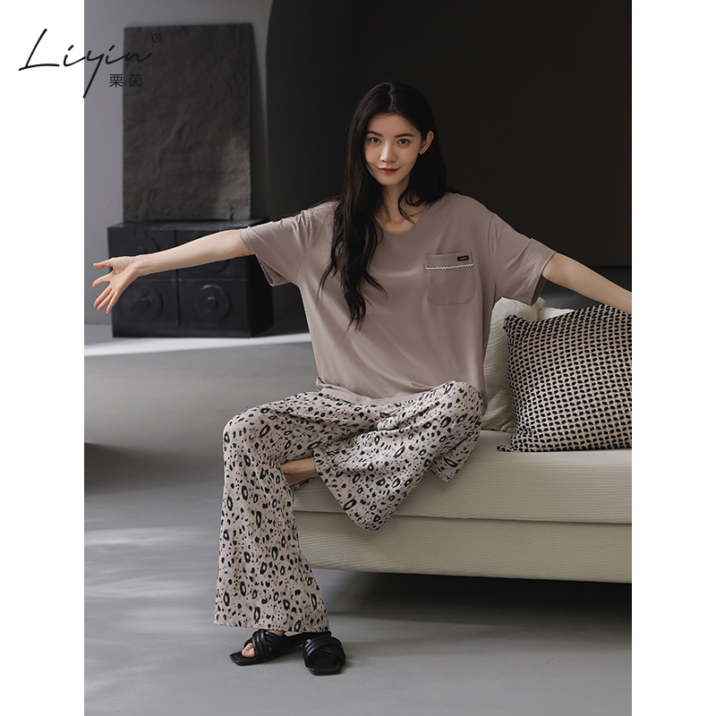 【带胸垫】莫代尔睡衣女士夏天短袖长裤宽松可外穿家居服两件套装