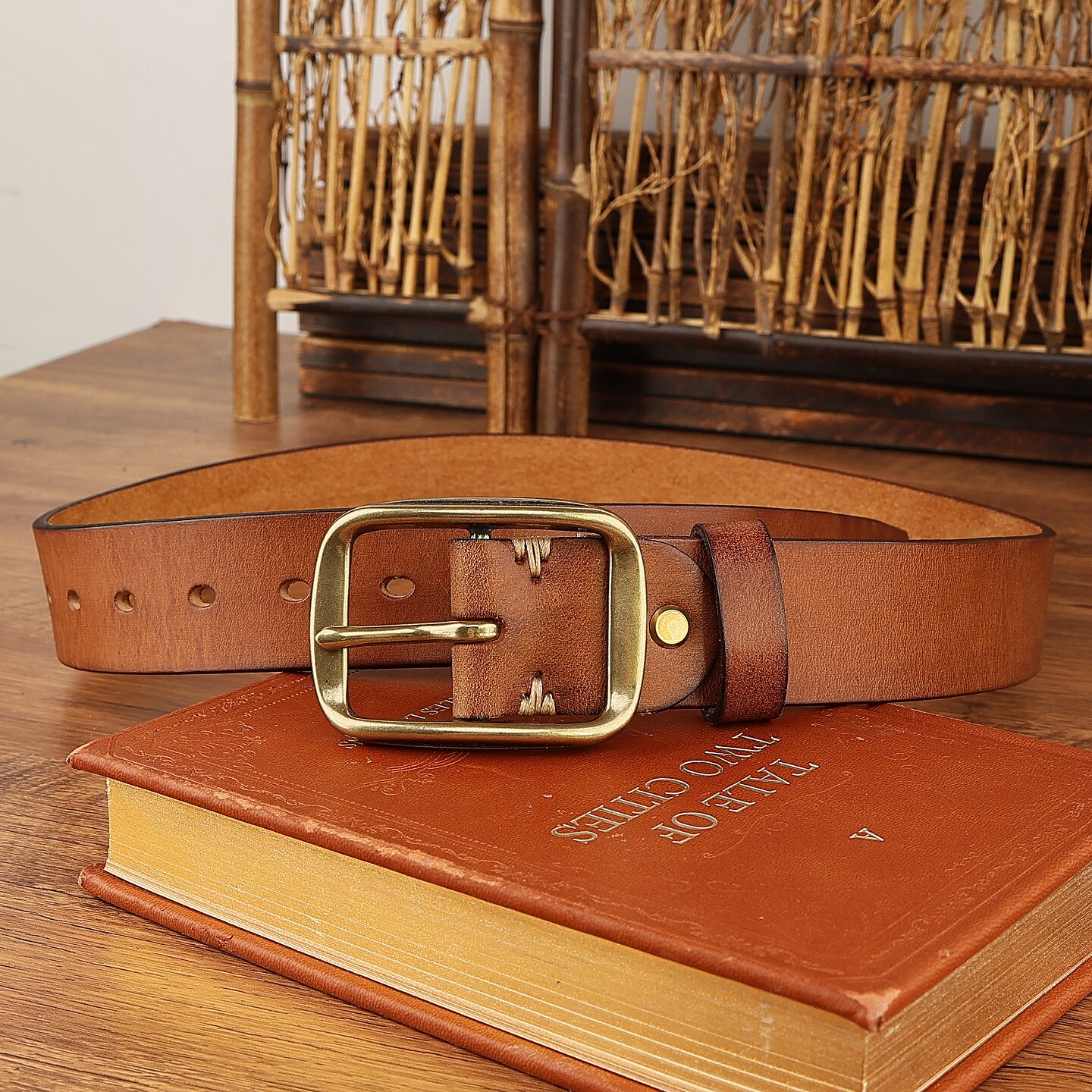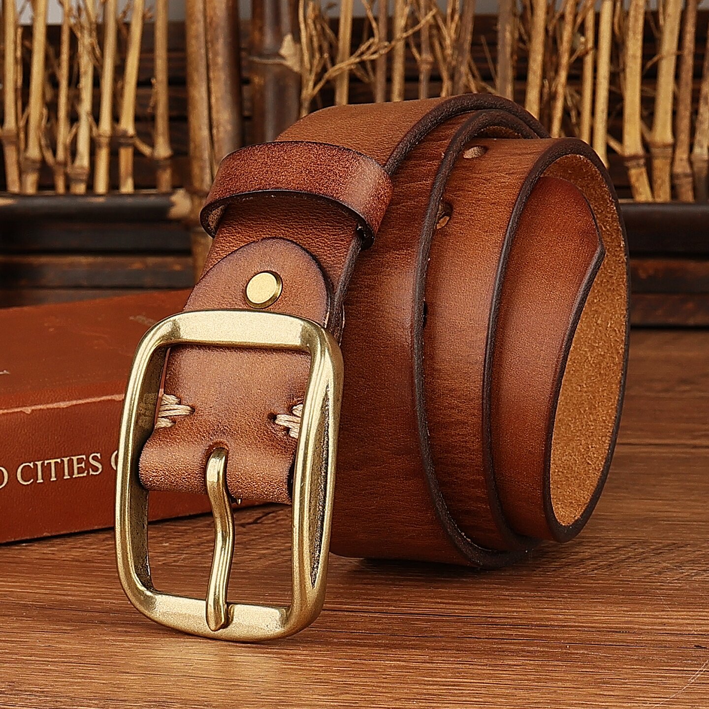 纯牛皮美式复古阿美咔叽男皮带
