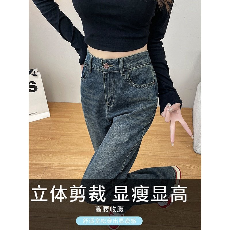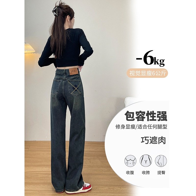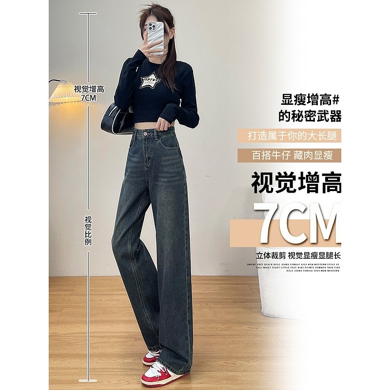 水泥灰窄版阔腿牛仔裤女秋季款2024新款爆款高腰显瘦小个子直筒裤