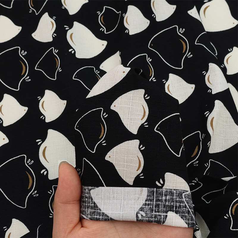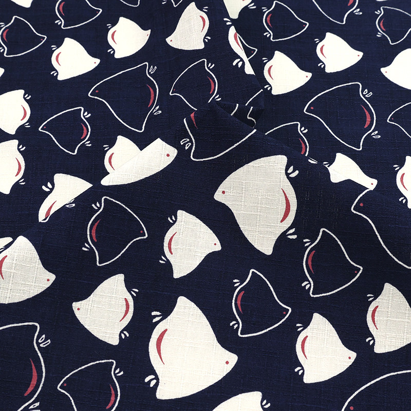 日本hokkoh进口竹节棉面料快乐蝠鲼鱼可爱卡通舒适手工服装围裙布