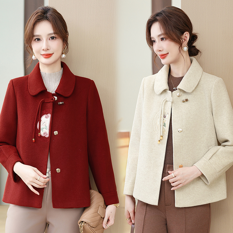 25秋季新款中年女士毛呢外套时尚年轻妈妈短款大衣奶奶装上衣褂子
