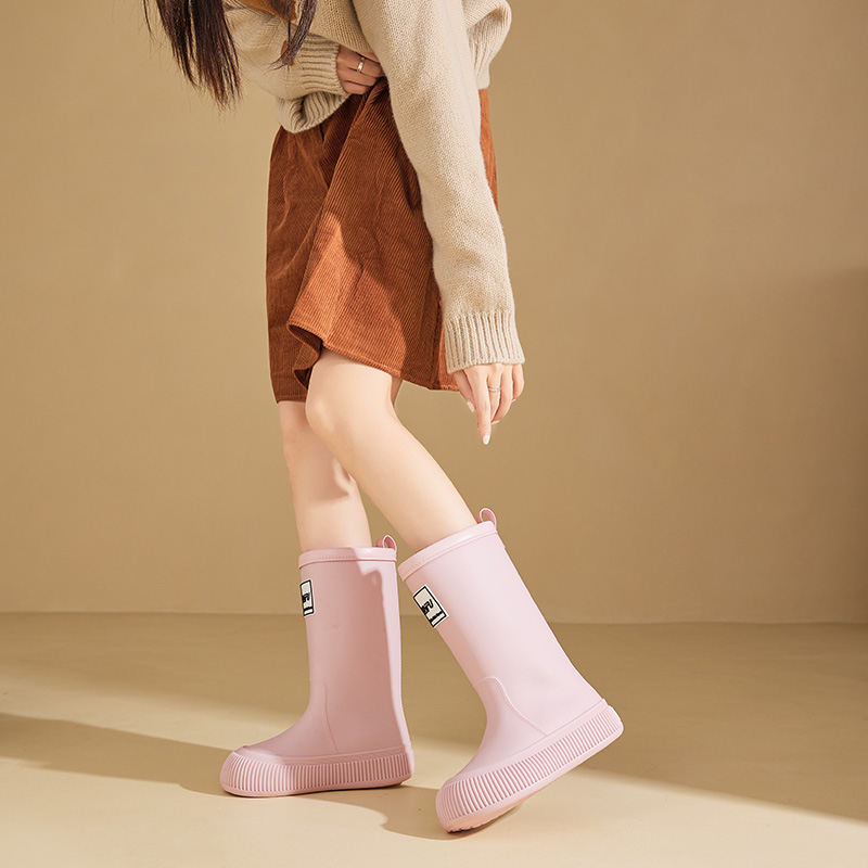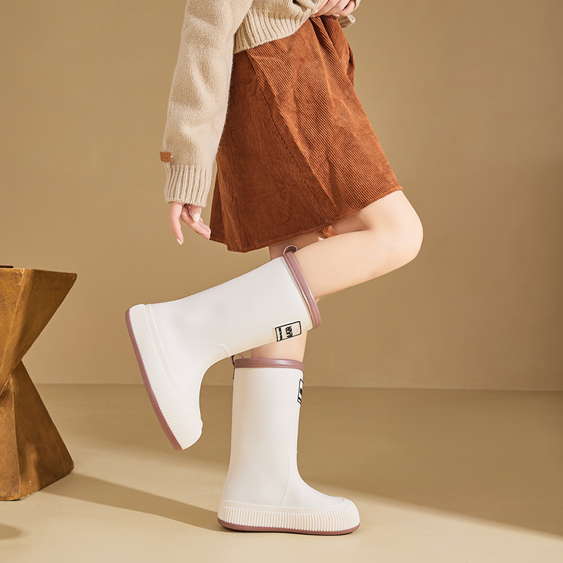 新款加绒露营防滑胶鞋时尚中筒