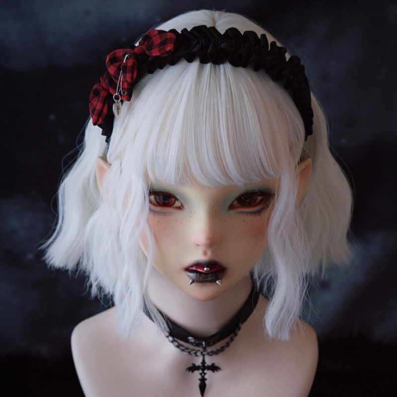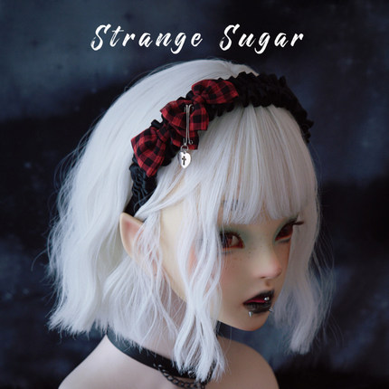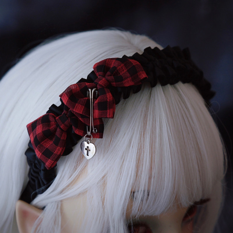 怪糖饰物集原创手工红黑格小蝴蝶结爱心十字褶皱发箍头箍亚文化