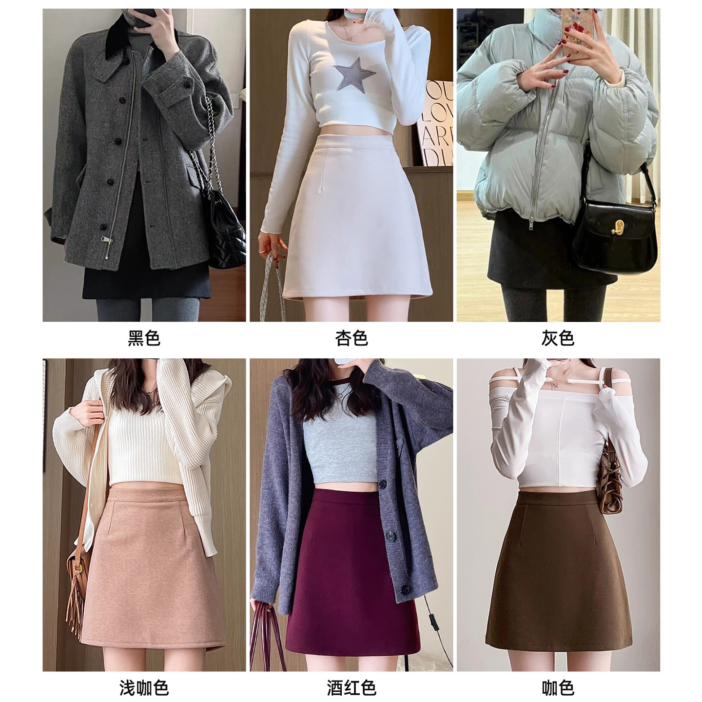 黑色毛呢包臀短裙女秋季2025年新款高腰显瘦a字小个子辣妹半身裙