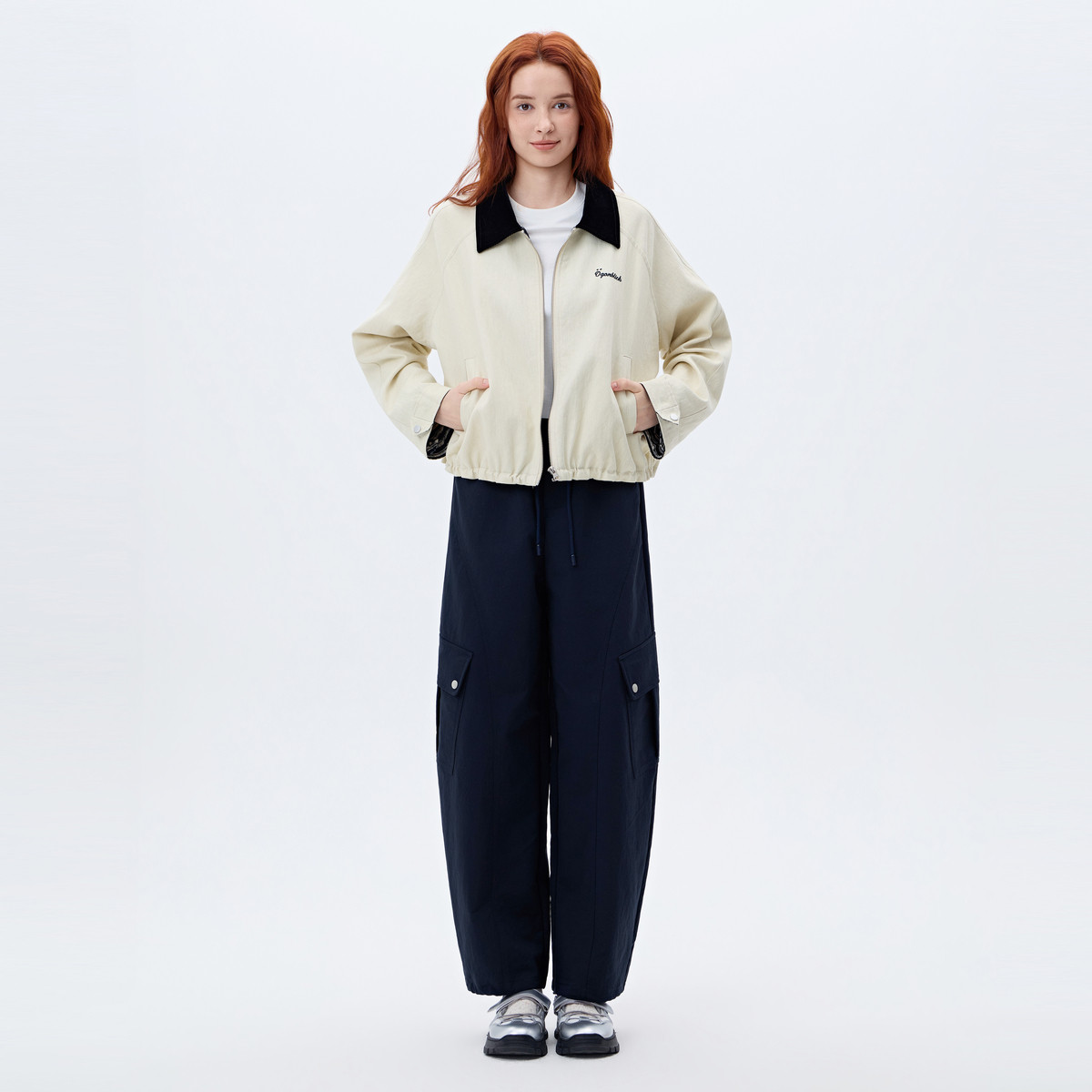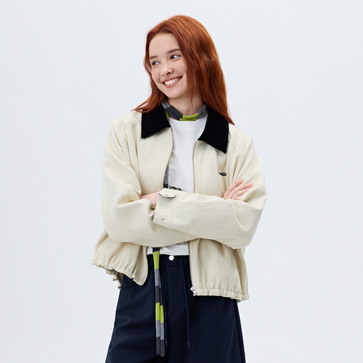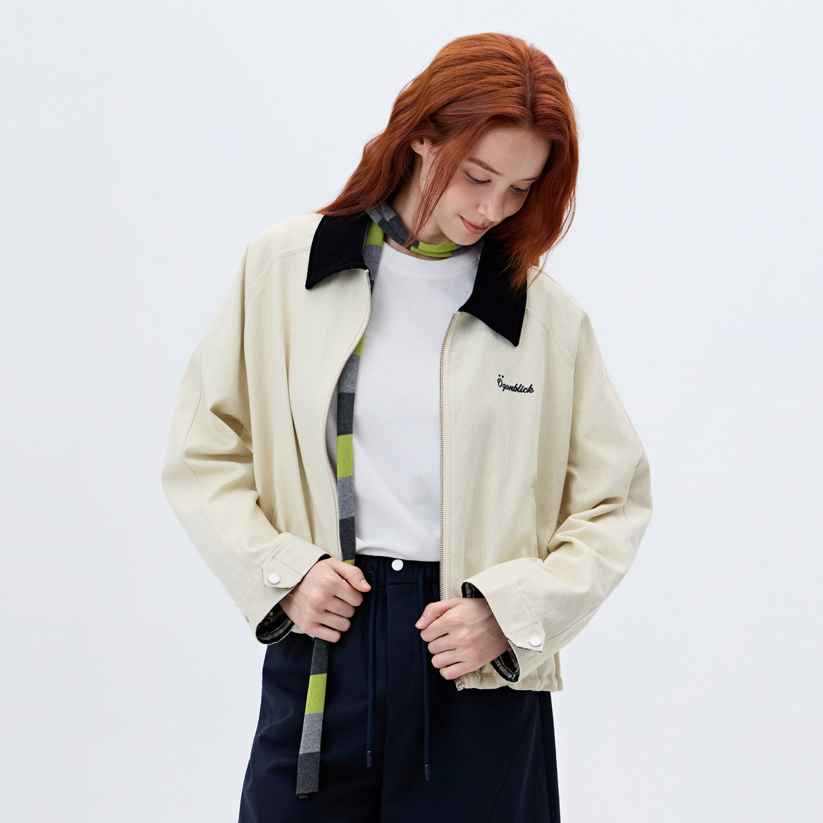 商场同款北欧时刻撞色拼接翻领外套女2026年春季新款百搭宽松上衣