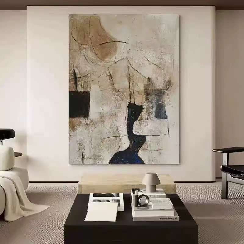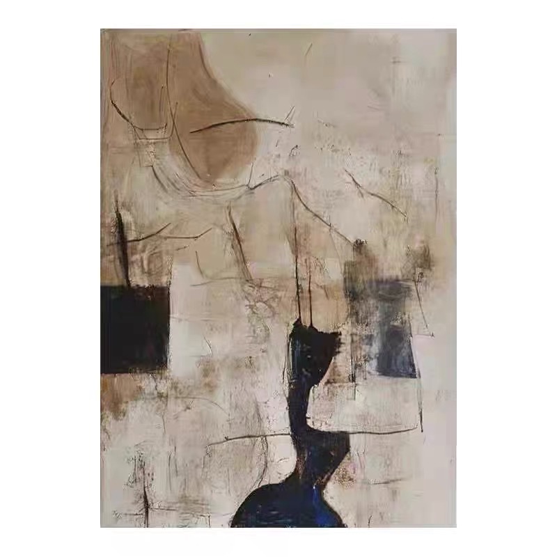 纯手绘抽象油画侘寂风客厅装饰画高级感肌理玄关挂画大幅民宿壁画