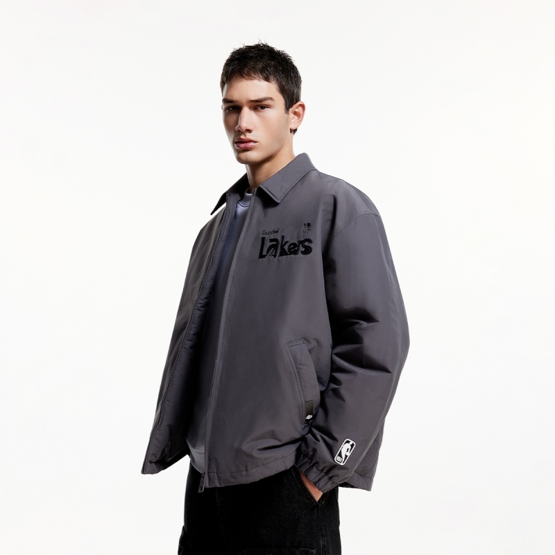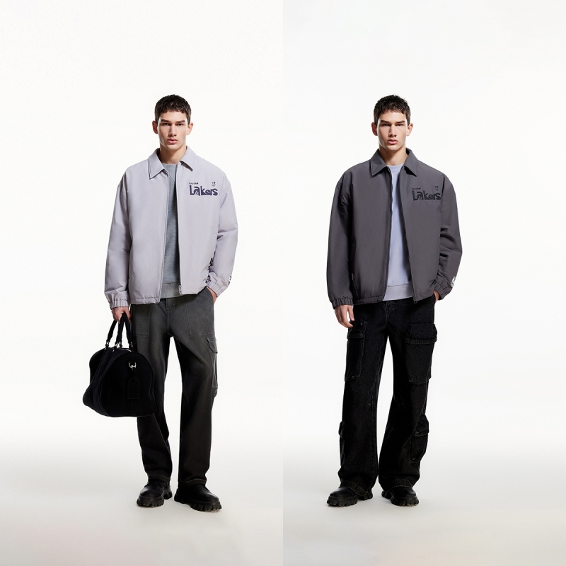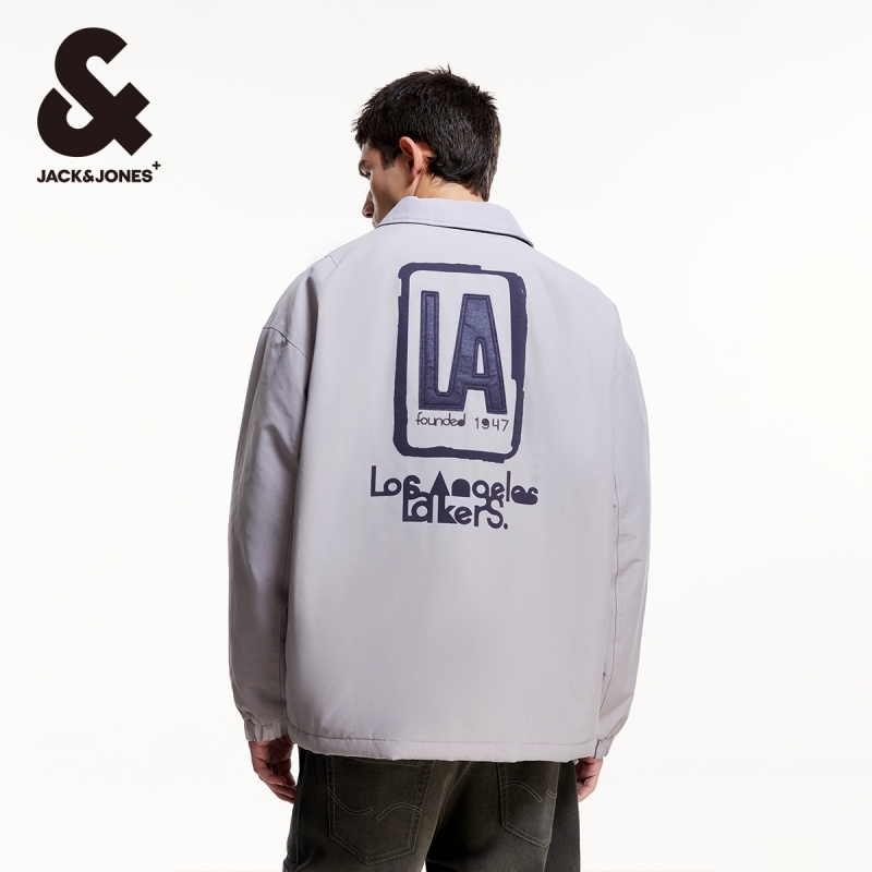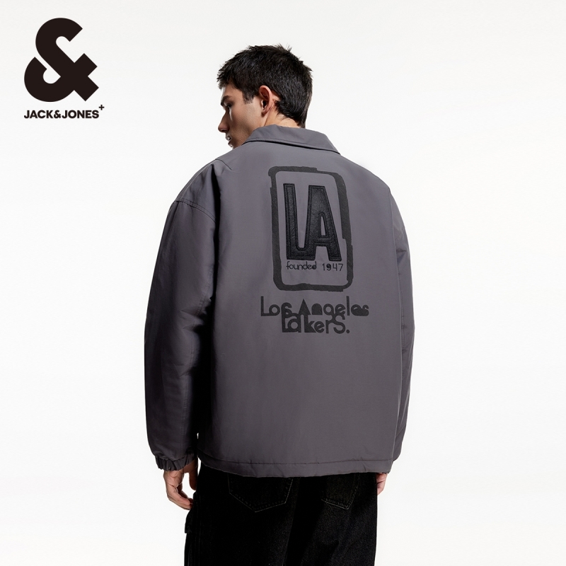 杰克琼斯夹克外套春季NBA联名款湖人队胶印日常宽松翻领棉服男装