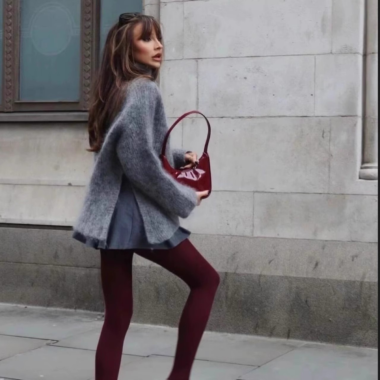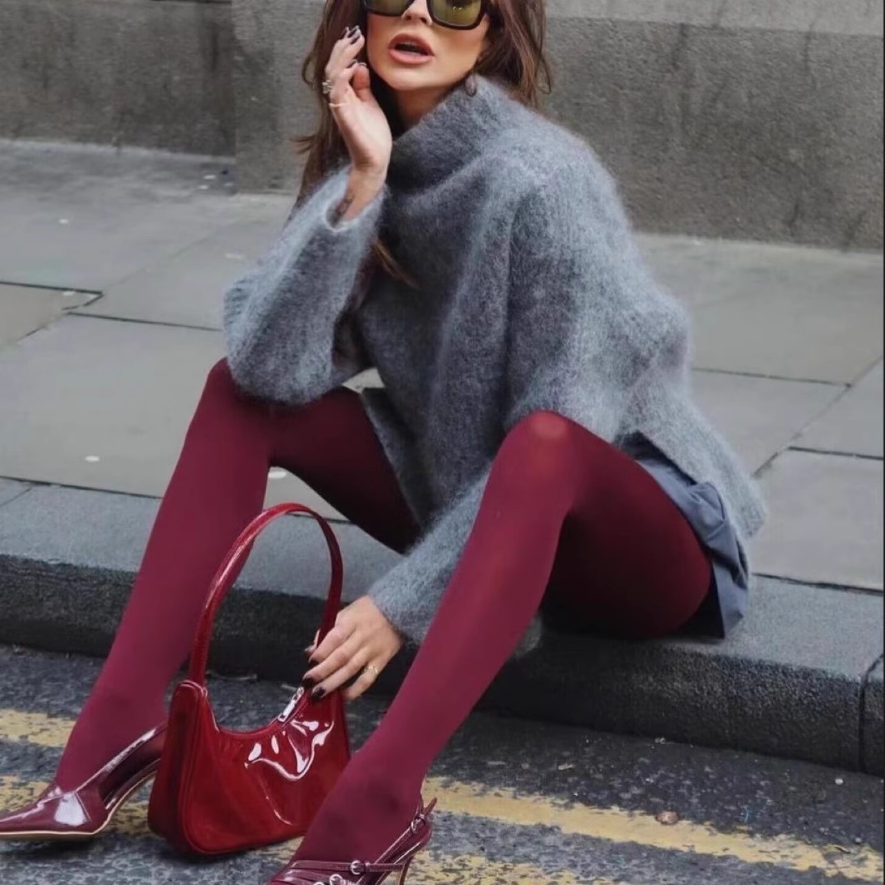 安可拉红打底裤女外穿春秋复古压力瘦腿袜裤高腰显瘦酒红色连裤袜