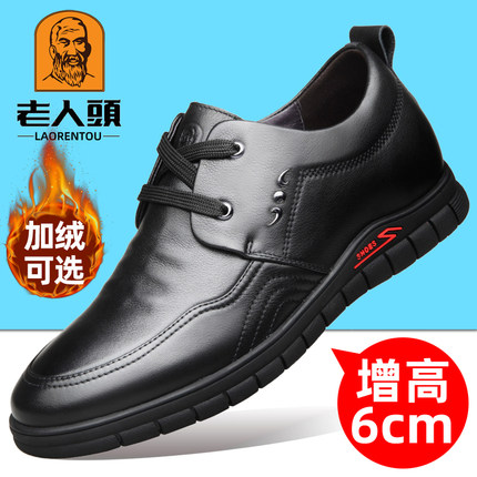 老人头皮鞋男真皮内增高休闲皮鞋隐形增高6CM软皮软底加绒棉鞋男