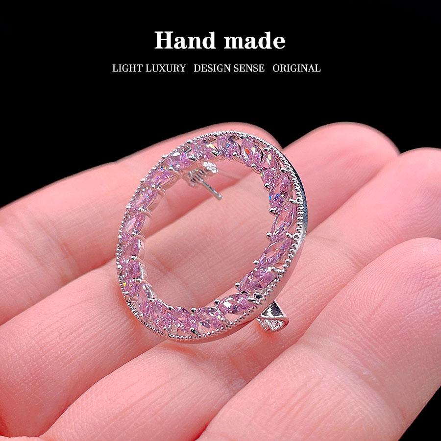 锆石简约百搭圆形胸针高档女精致胸花2023年新款别针西装节日送礼