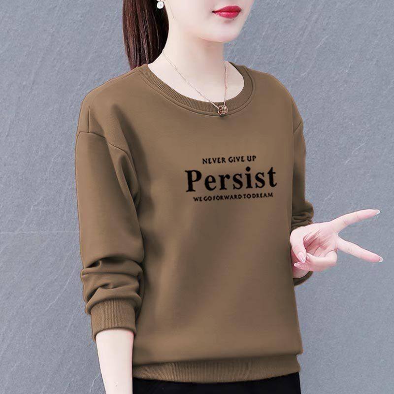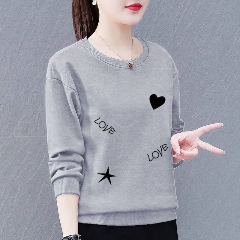 2025秋冬季印花减龄上衣宽松遮肚长袖卫衣女中年妈妈装大码打底衫