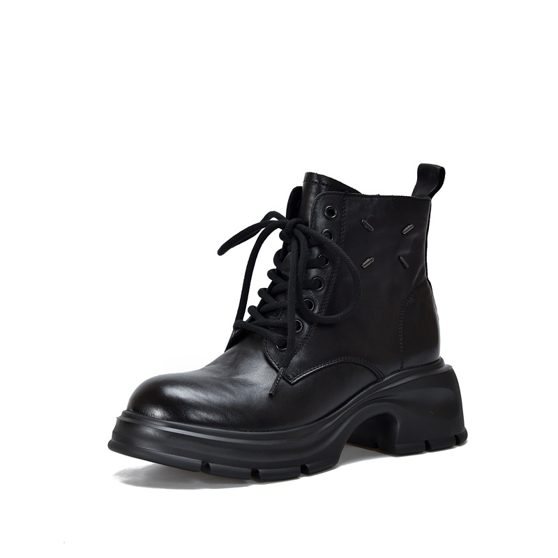 手抓纹头层牛皮厚底马丁靴女款短靴新款休闲百搭系带牛皮靴子