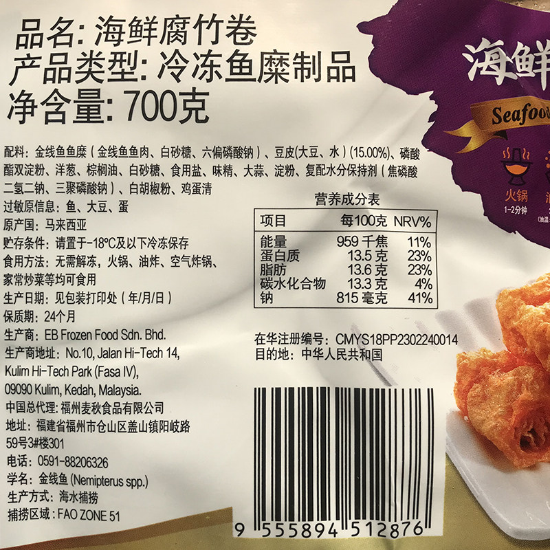 EB海鲜腐竹卷700g鱼糜制品火锅麻辣烫关东煮食材可油炸炒菜火锅