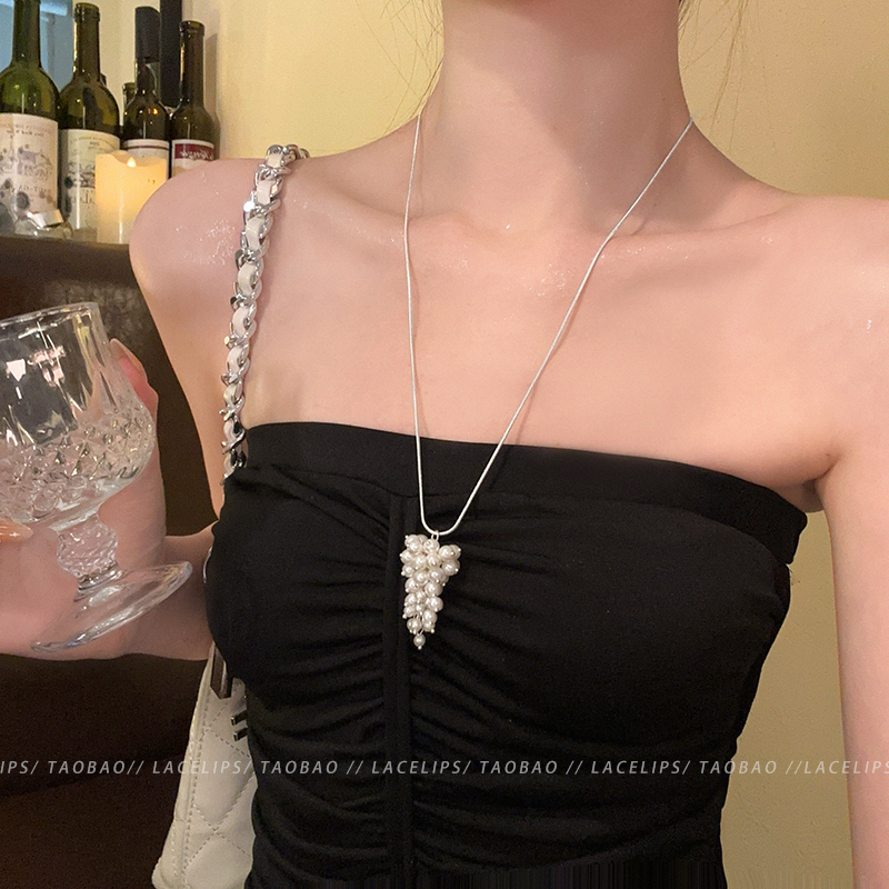 珍珠葡萄串珠项链女款设计感长款毛衣链2025新款颈链小众百搭配饰
