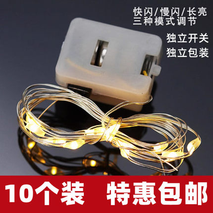 LED灯串铜线灯电池彩色灯蛋糕装饰灯串插件配件生日鲜花暖白闪灯