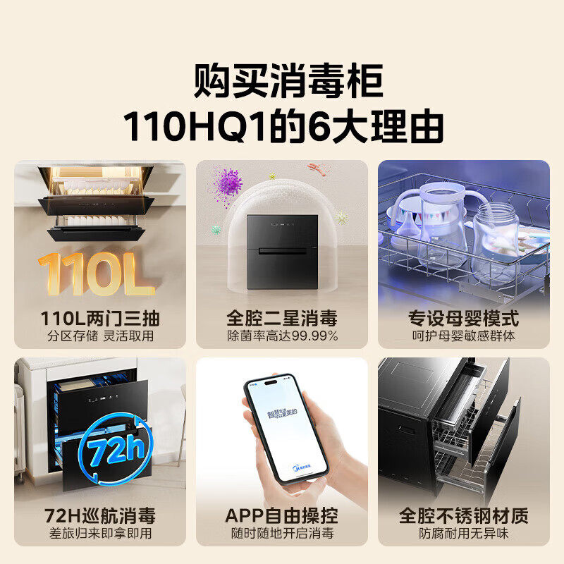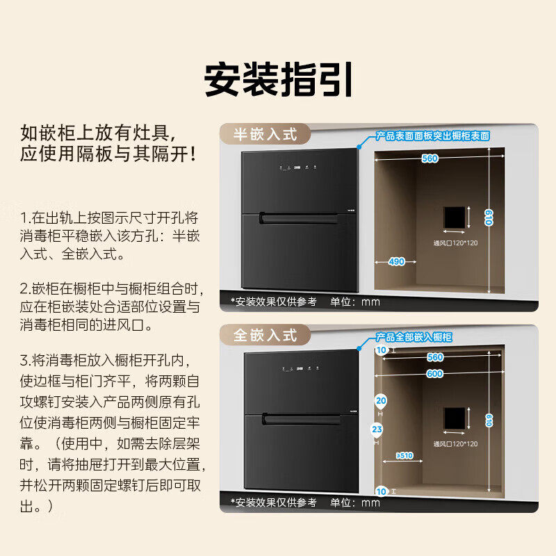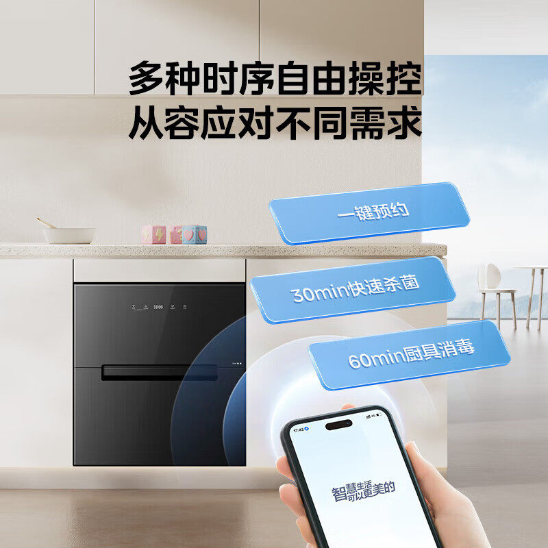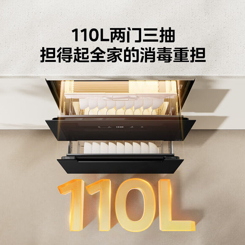 美的消毒柜嵌入式家用110L大容量两门三抽餐具光波紫外线碗筷柜