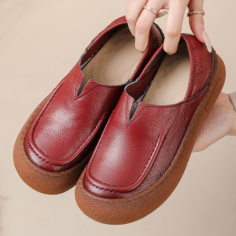 头层牛皮妈妈鞋软底舒适女鞋春秋平底单鞋女鞋复古宽脚胖脚乐福鞋