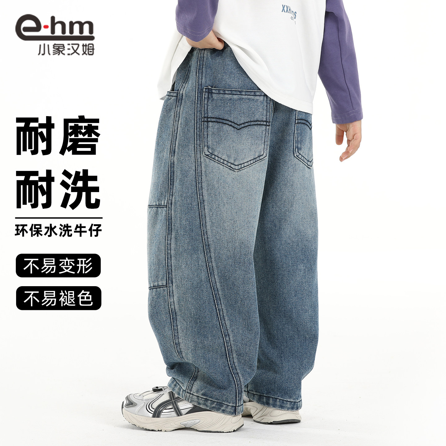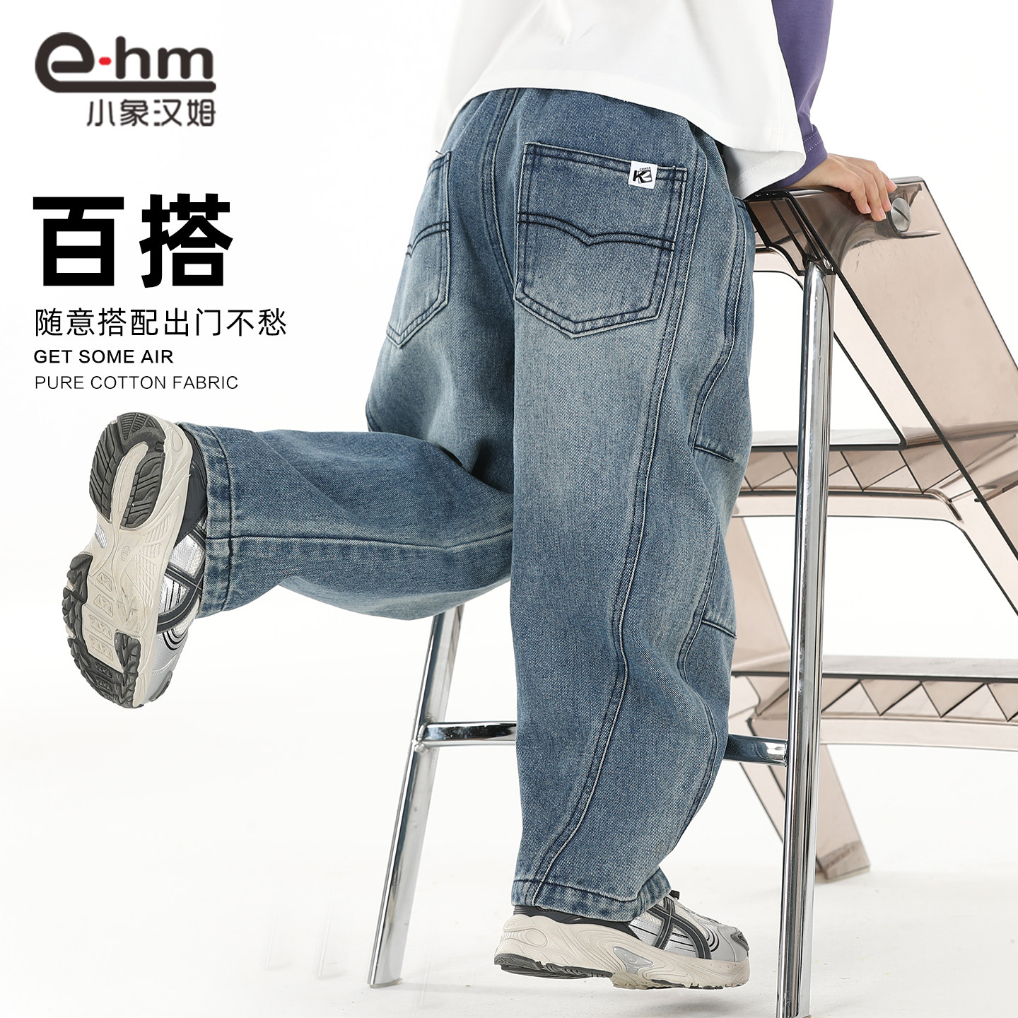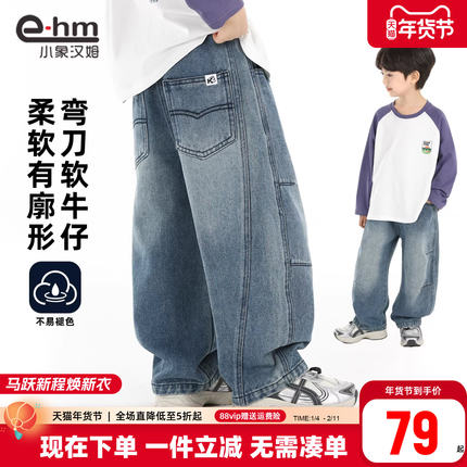 小象汉姆童装男童牛仔裤儿童春春款裤子2026新款中大童春装弯刀裤