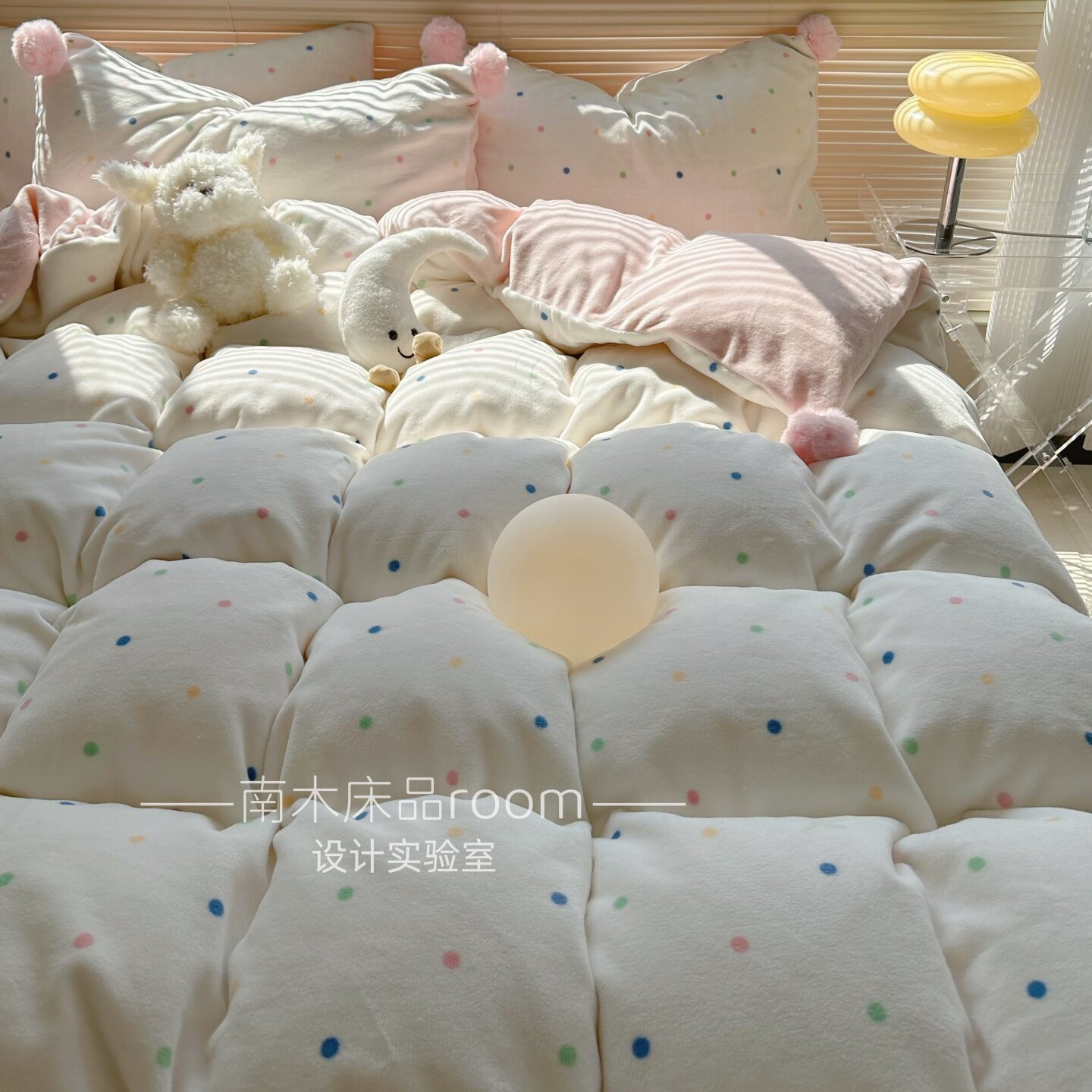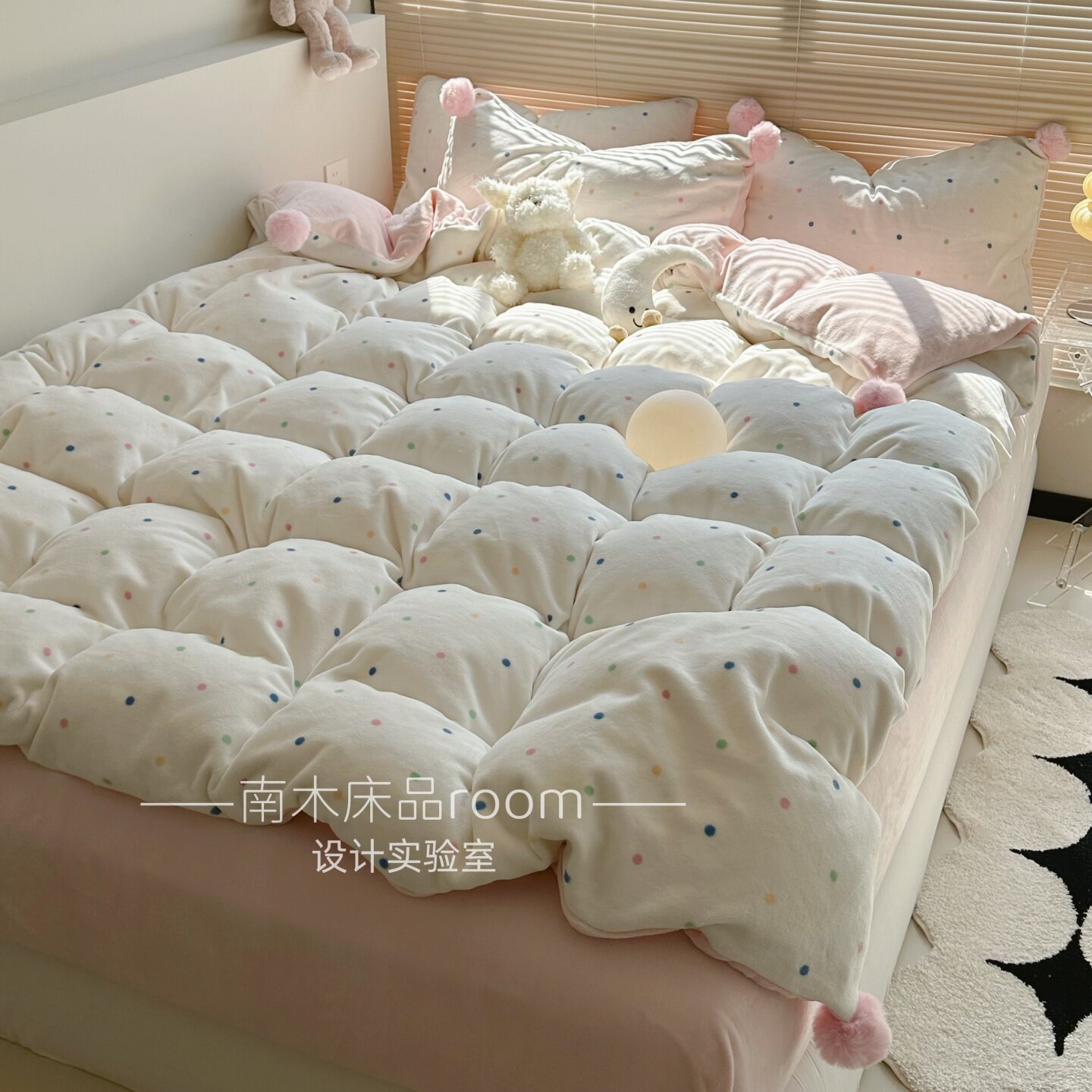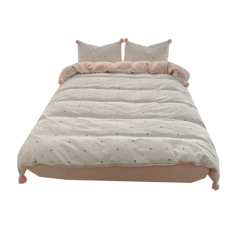 奶油彩色波点加厚牛奶绒四件套